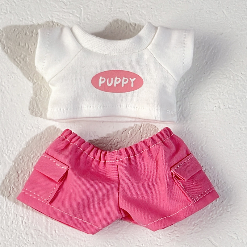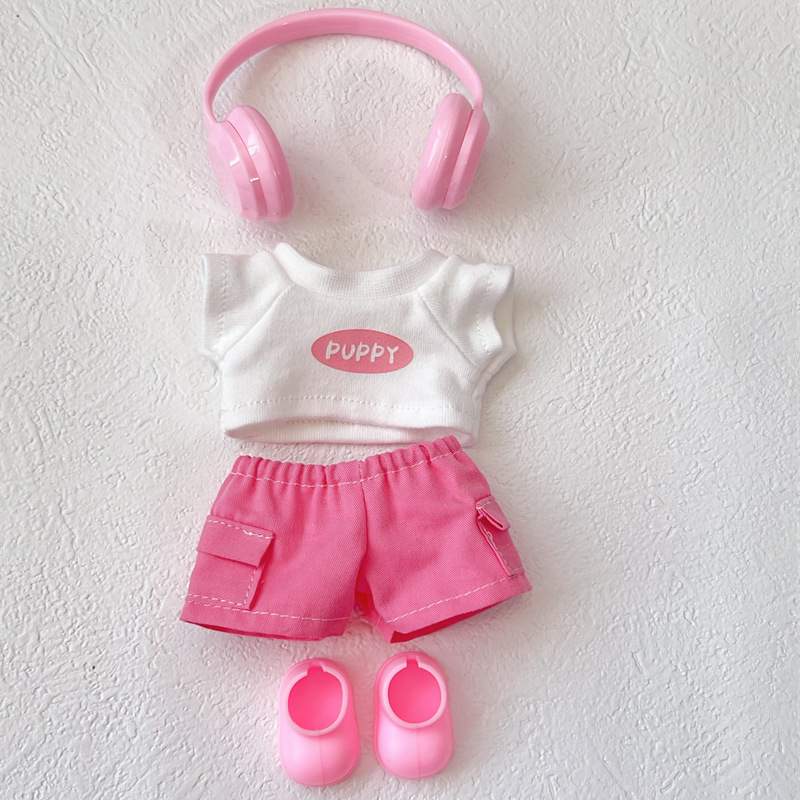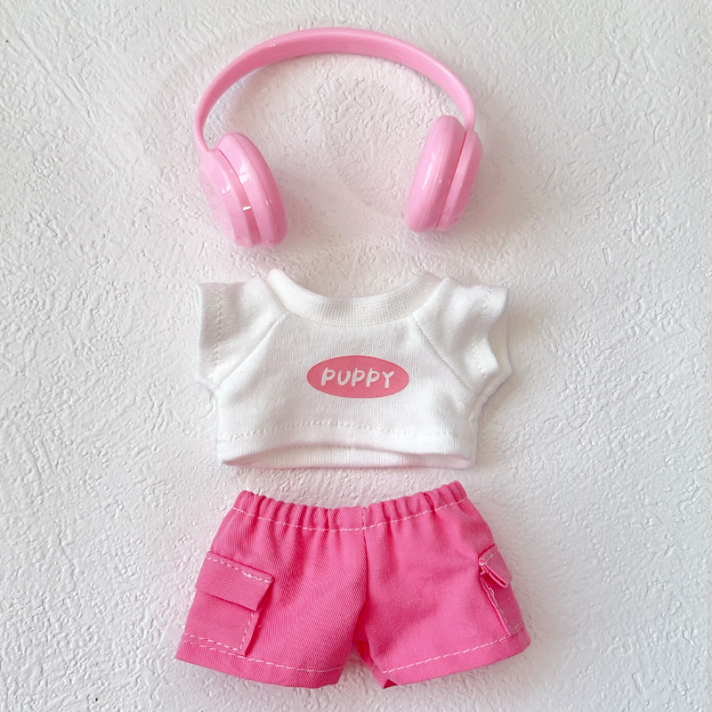 • 핑크 이어폰 + 핑크 푸티셔츠 투피스 세트 + 핑크 PP 슈즈