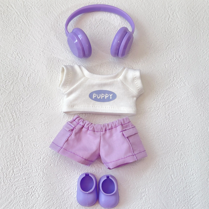 • 보라색 헤드폰 + 보라색 pu 티셔츠 투피스 세트 + 보라색 pp 신발