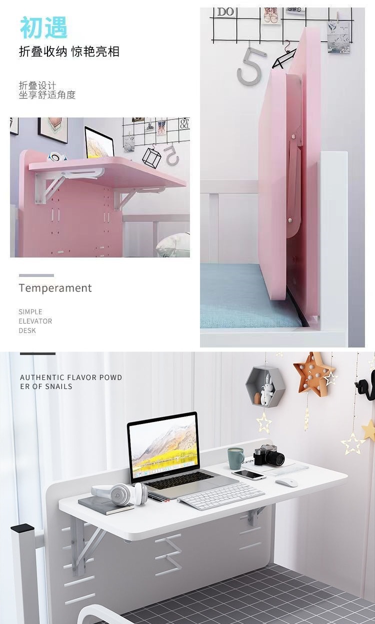 학생 기숙사 침대 테이블 접이식 컴퓨터 테이블 기숙사 책상 작은 테이블 이층 침대 침대 옆 측면 교수형 보관함