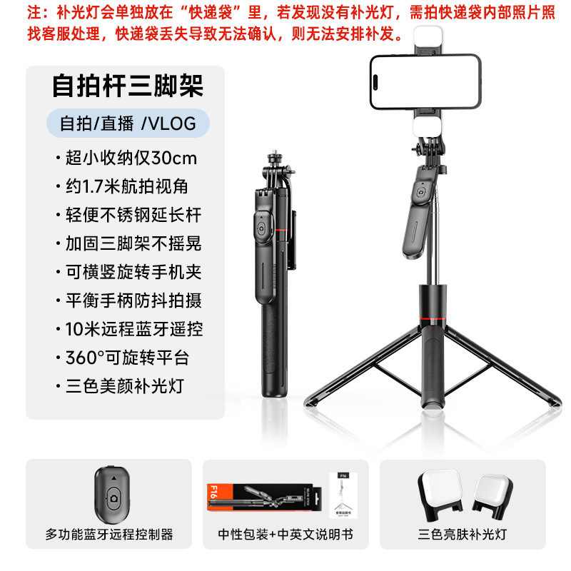 셀카봉, 흔들림 방지, 접이식 삼각대, 휴대용 여행용 블루투스 촬영 유물, 라이브 방송 휴대폰 홀더 F16스토어 가기