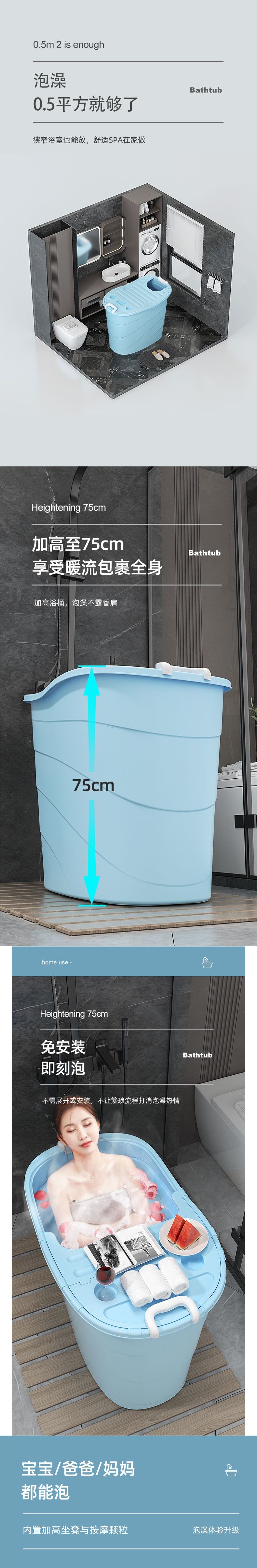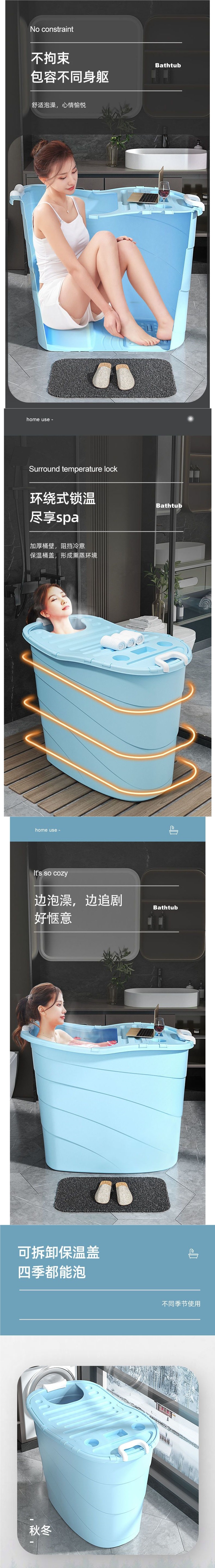 가정용으로 두꺼워진 플라스틱 욕조가 있는 매우 긴 성인용 욕조스토어 가기