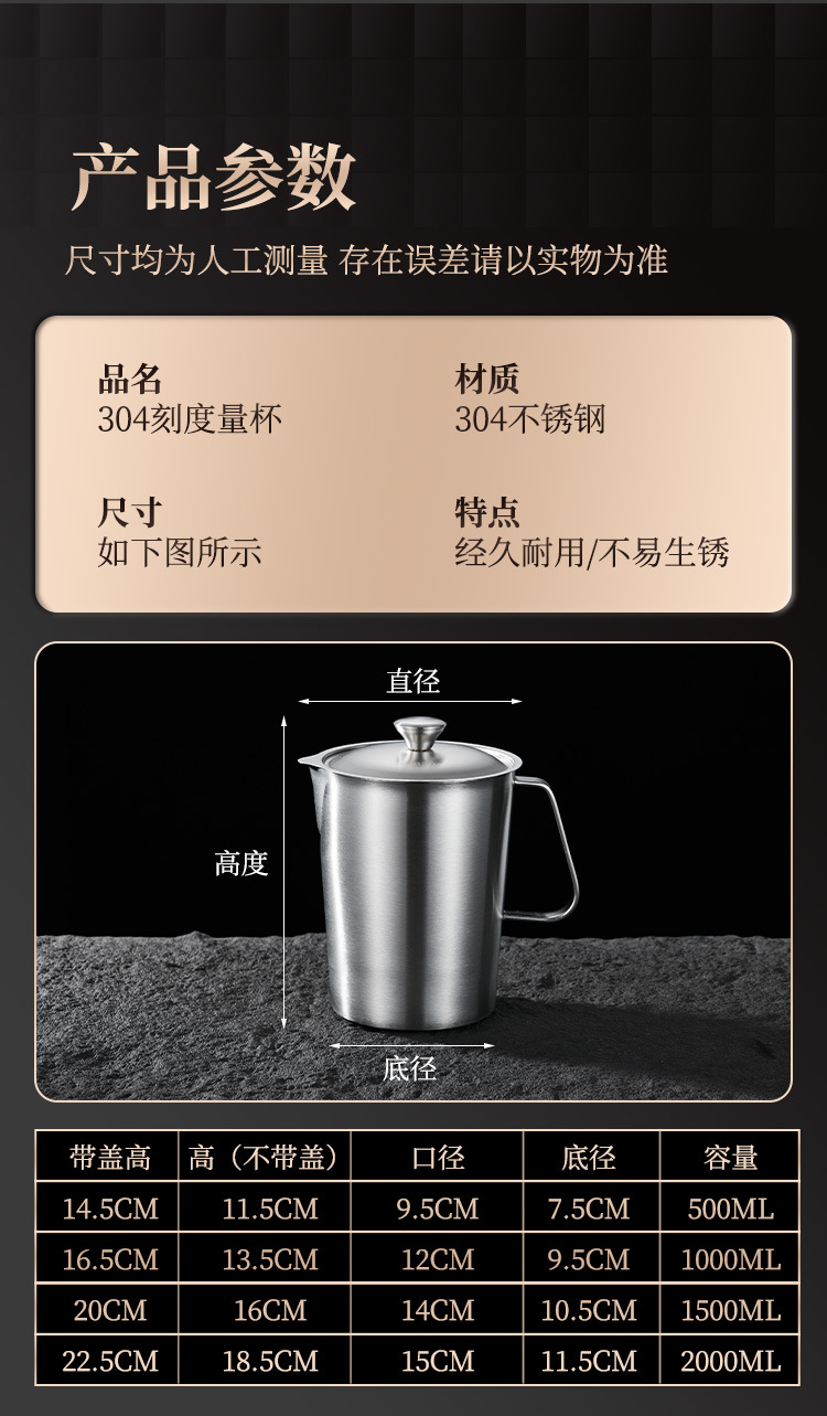 • 304 스테인리스 계량컵 2000ml (뚜껑 포함)