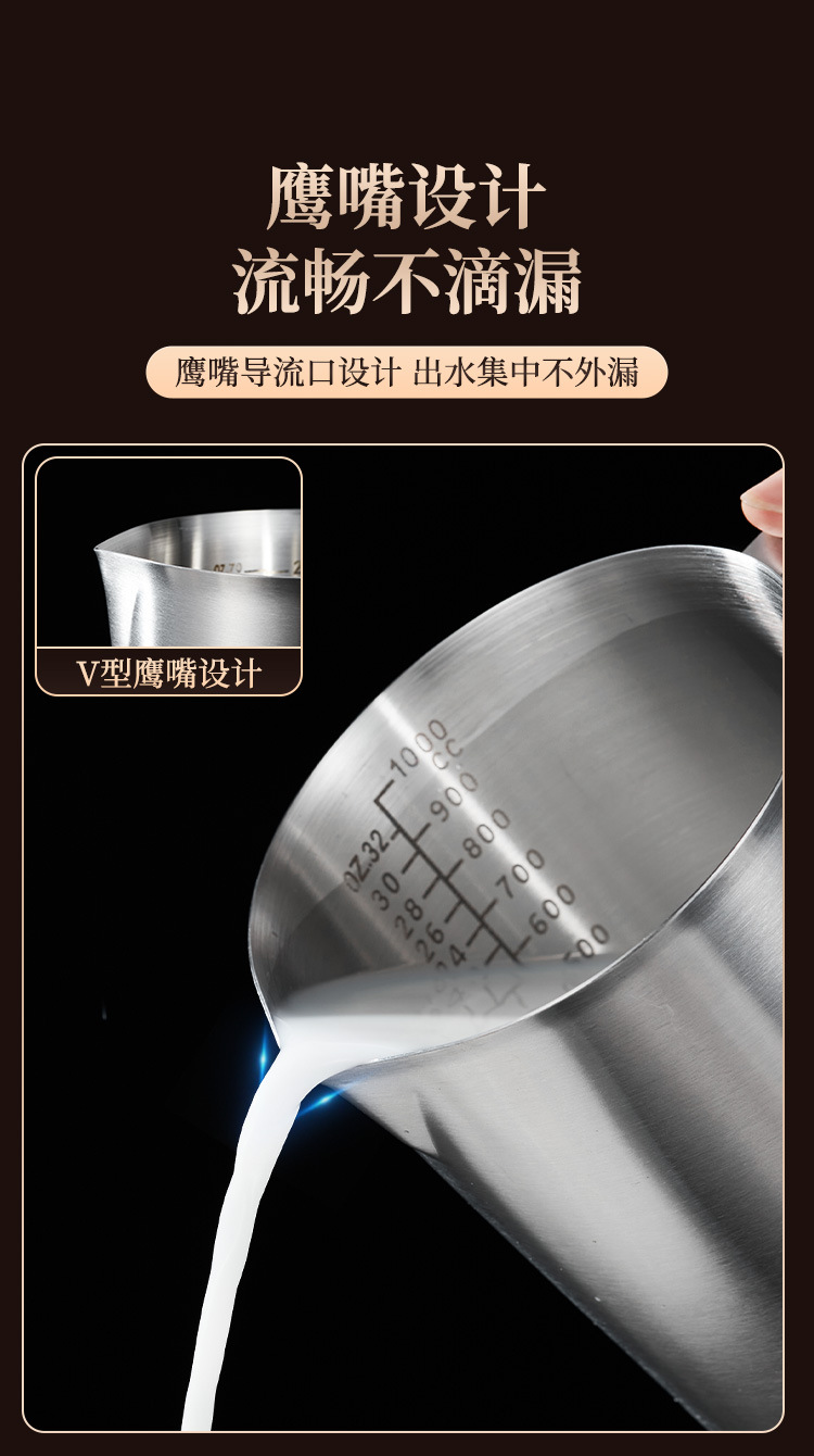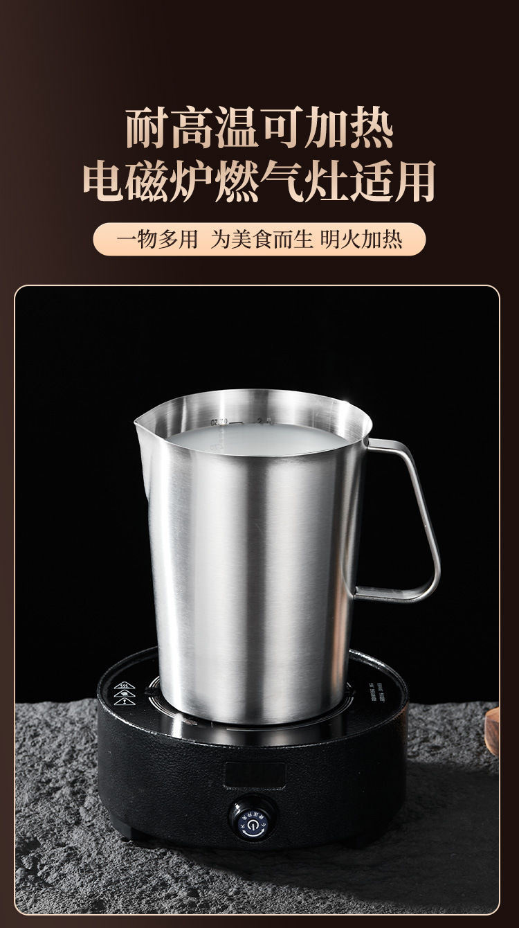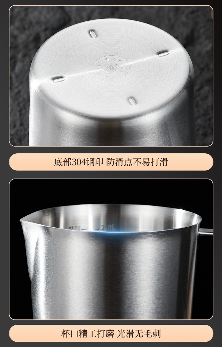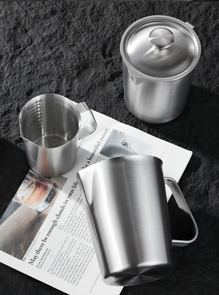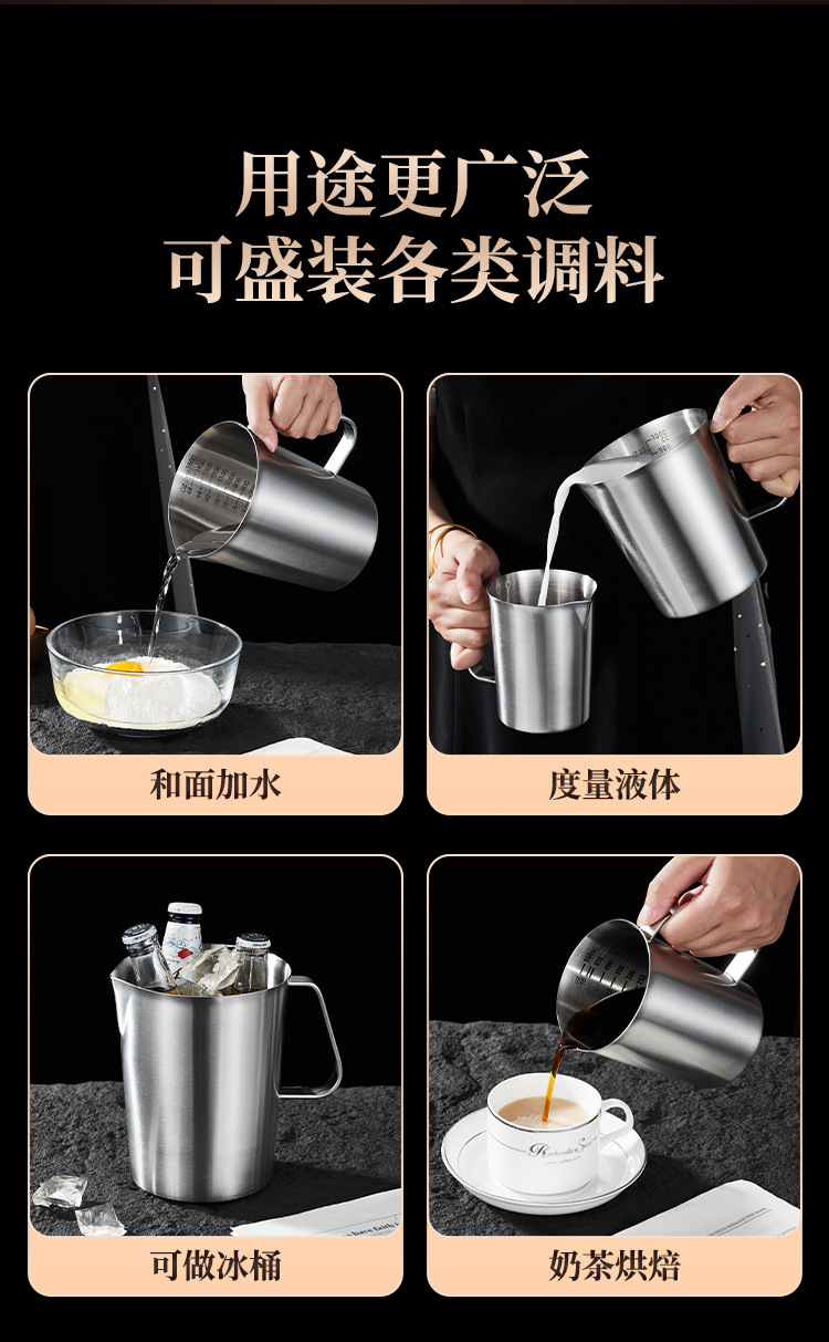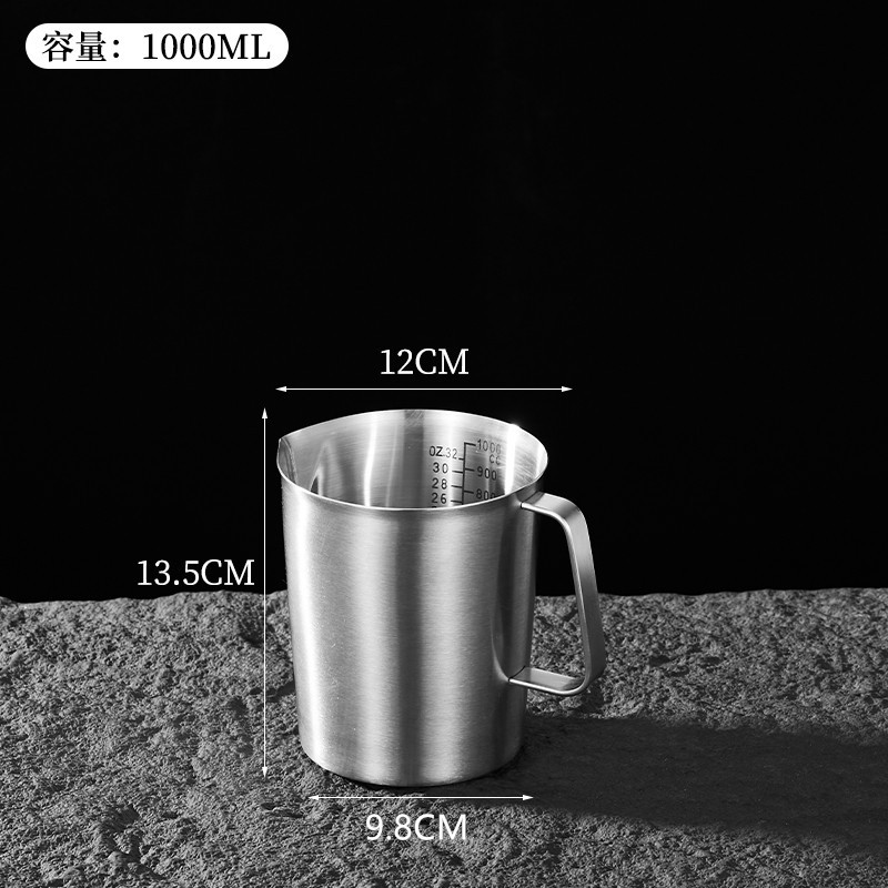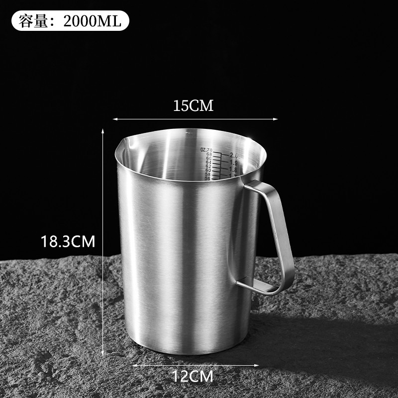 스케일 측정 컵이있는 두꺼운 304 스테인레스 스틸 측정 컵 커피 우유 차 베이킹 측정 스푼 측정 컵 0.5-2.0L