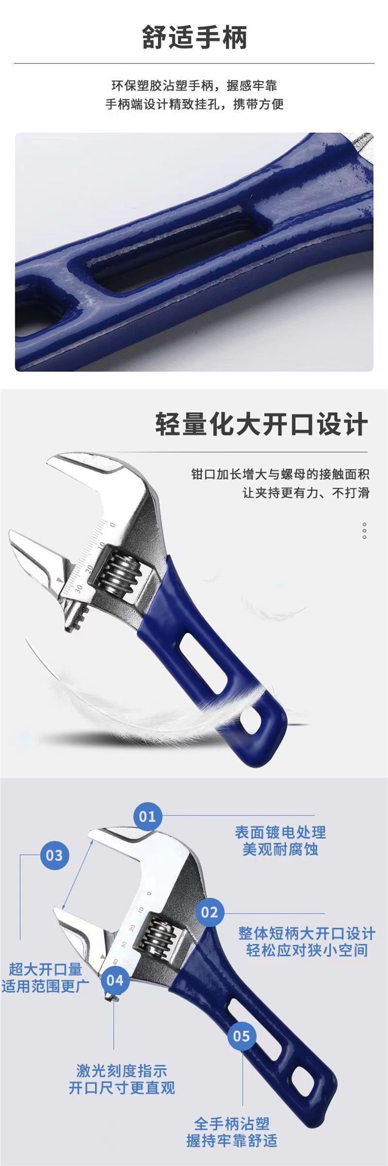 욕실 렌치, 짧은 손잡이, 큰 개구부, 다기능, 이동식 보드, 짧은 보드, 6인치 8
