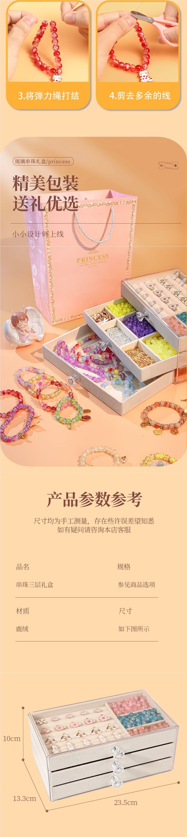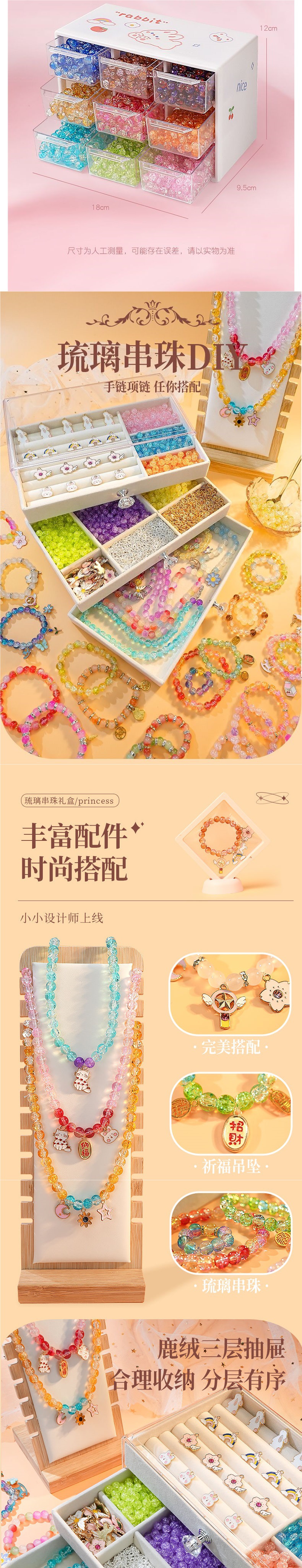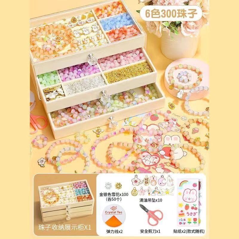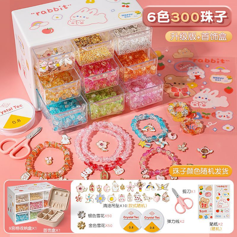 • [보석함 표준 버전] 6가지 색상의 유리 팔찌, 구슬 300개 - 도구 키트 포함