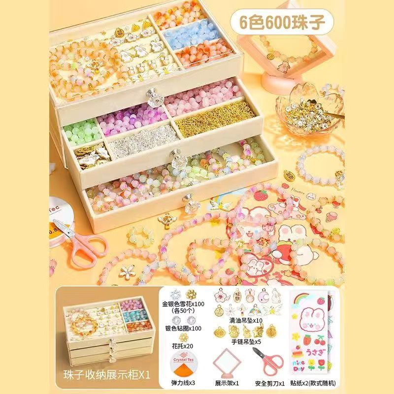 • [보석함 업그레이드 버전] 6가지 색상의 유리 팔찌, 600구슬 - 도구 키트 포함