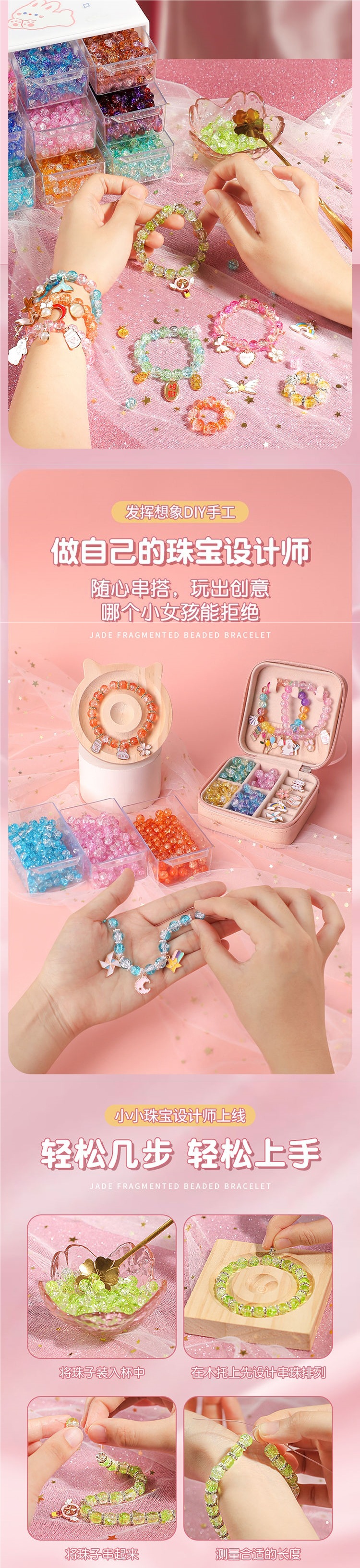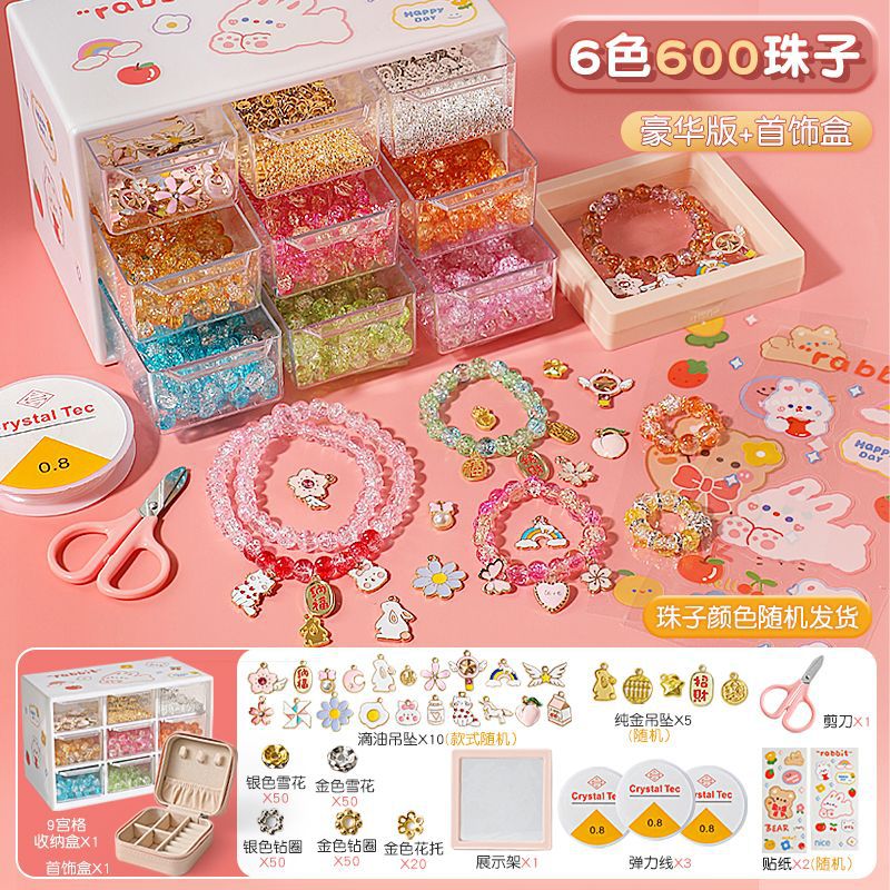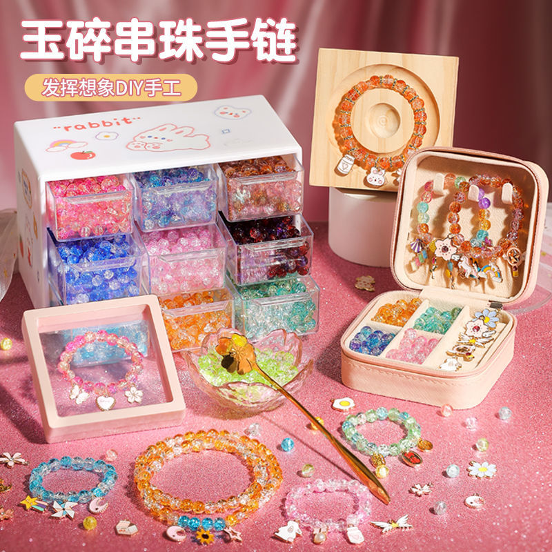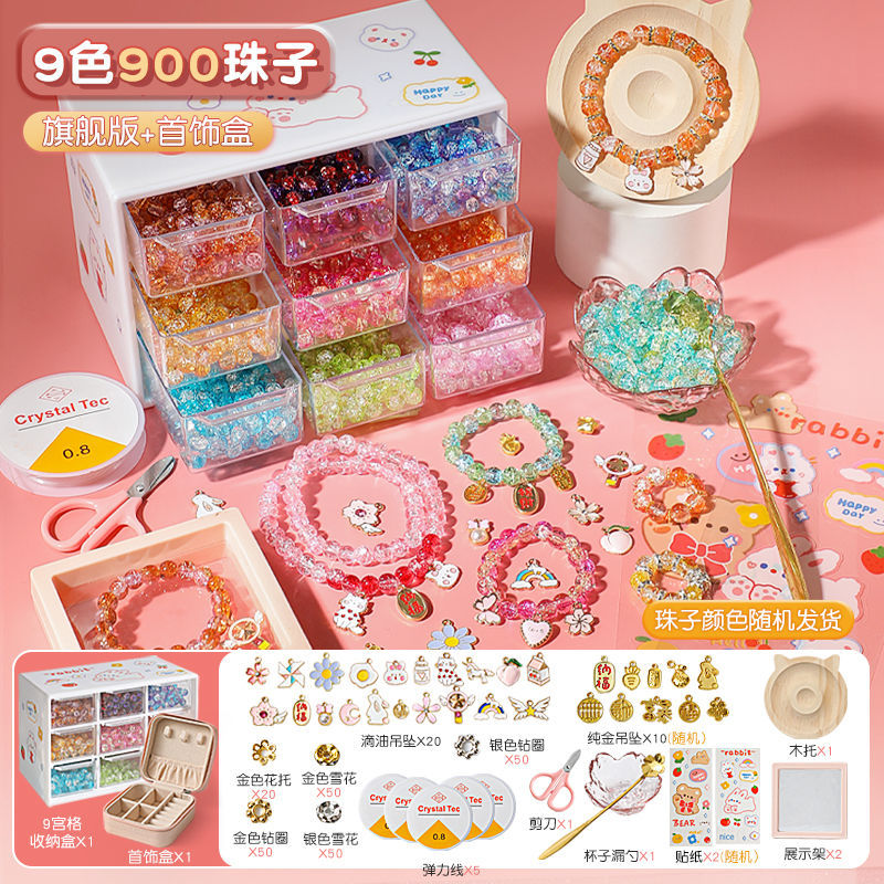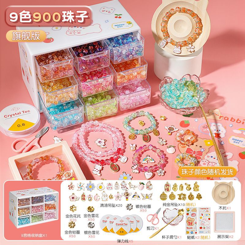 어린이 팔찌 구슬 수제 DIY 재료 어린이 소녀는 구슬을 착용하여 자체 제작 유리 크리스탈 보석 팔찌