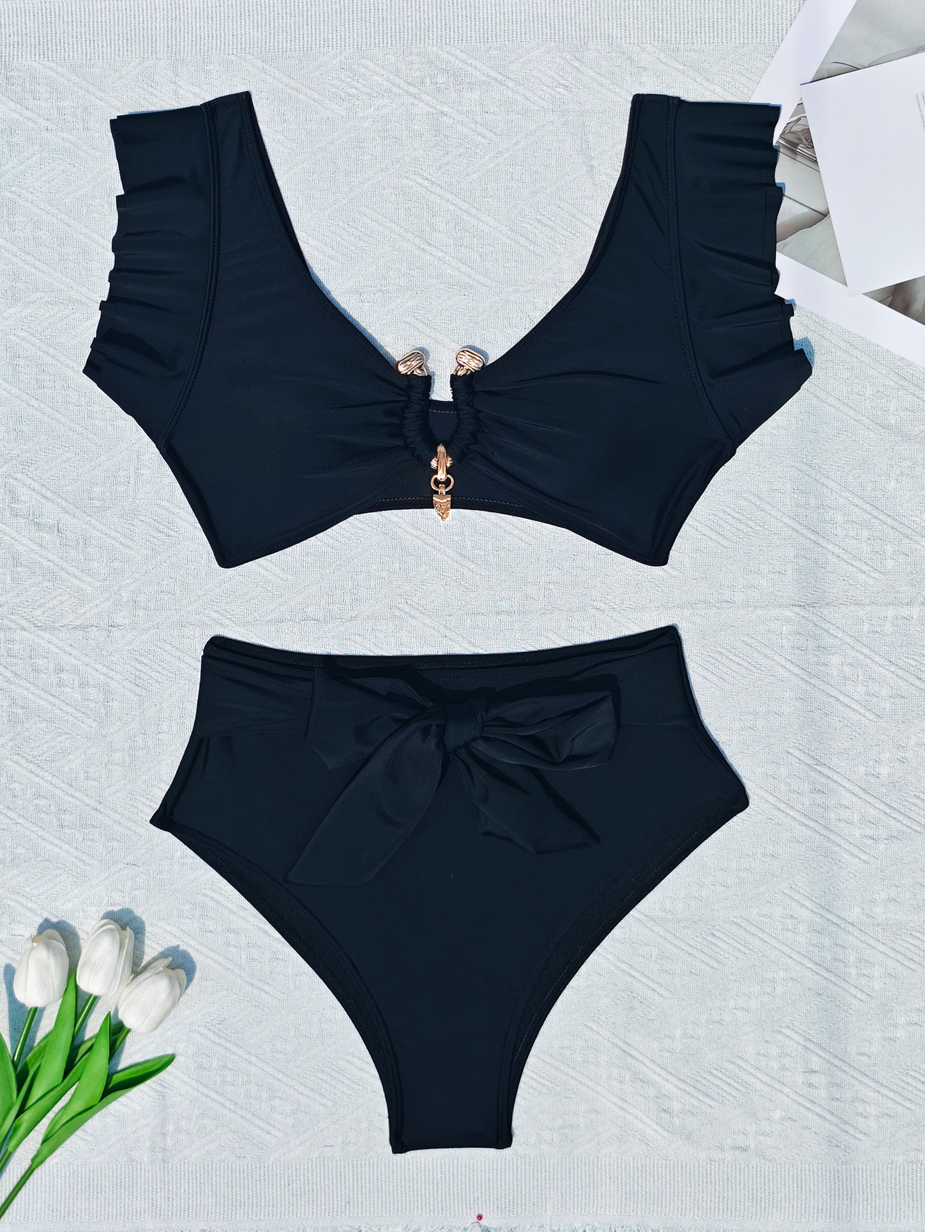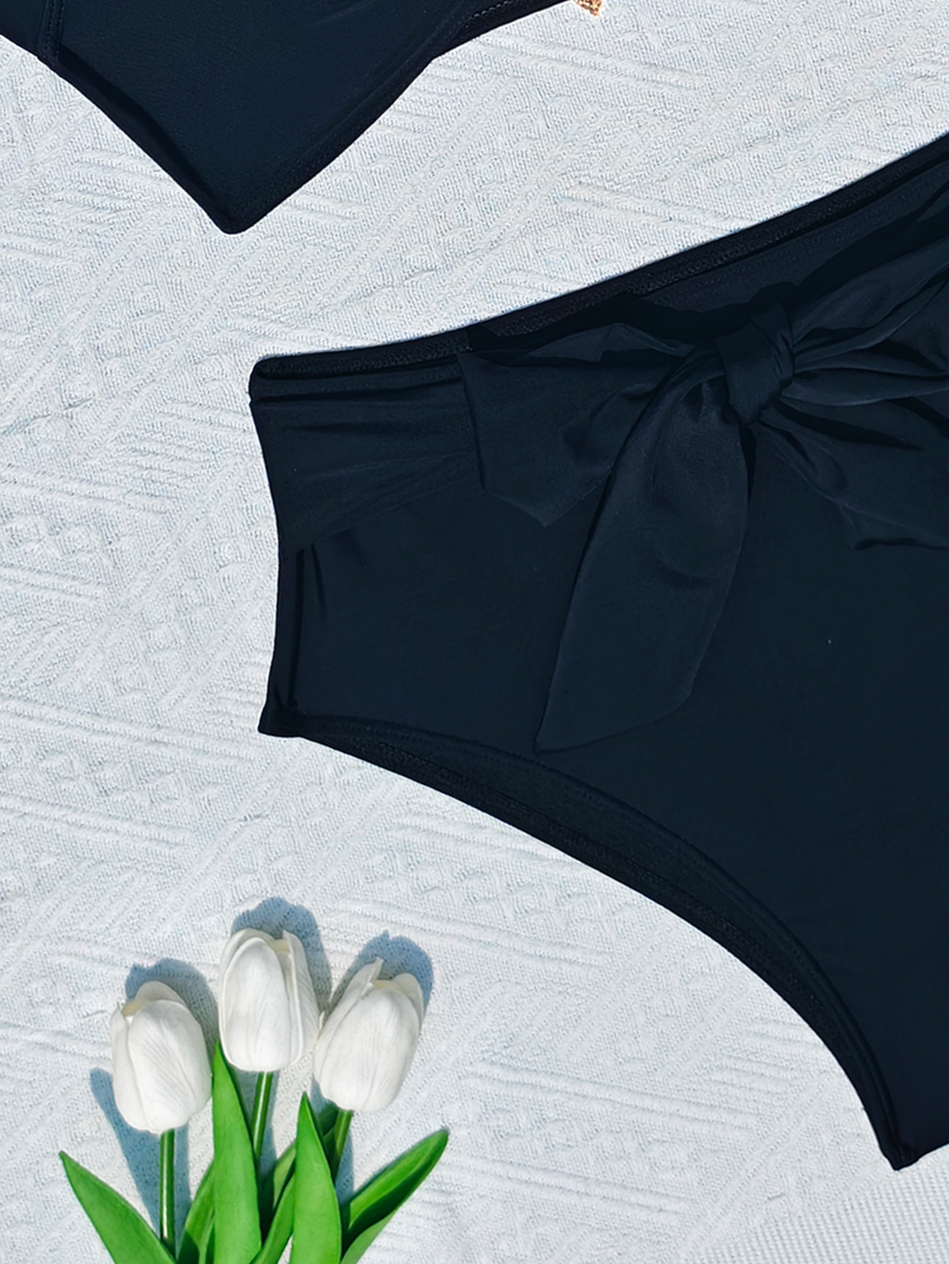 국경 간 인기 판매 스플릿 수영복 여성 솔리드 컬러 섹시한 레이스 중공 Huludao 수영복 유럽과 미국의 백리스 비키니