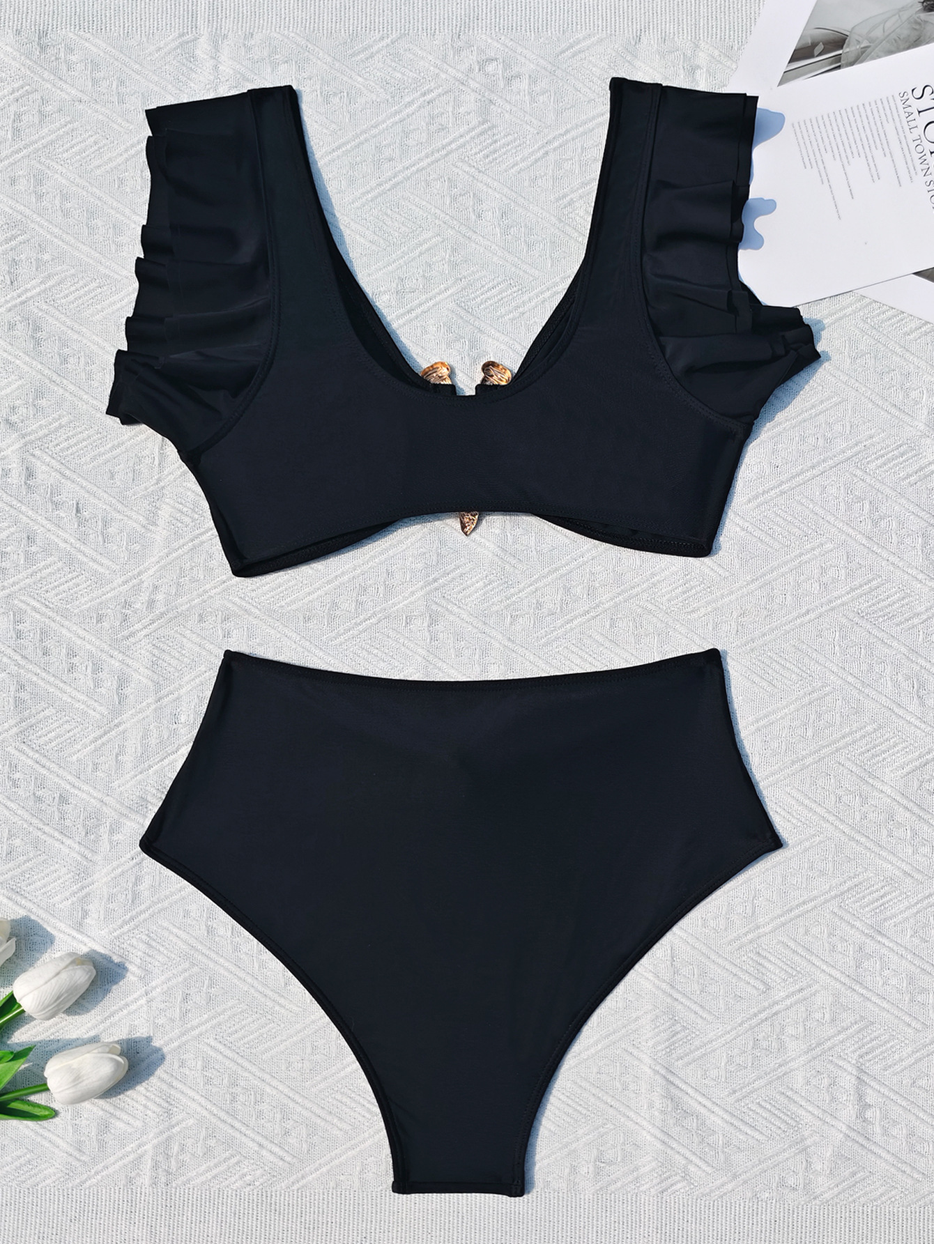 국경 간 인기 판매 스플릿 수영복 여성 솔리드 컬러 섹시한 레이스 중공 Huludao 수영복 유럽과 미국의 백리스 비키니스토어 가기