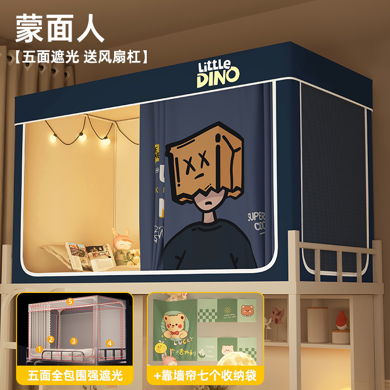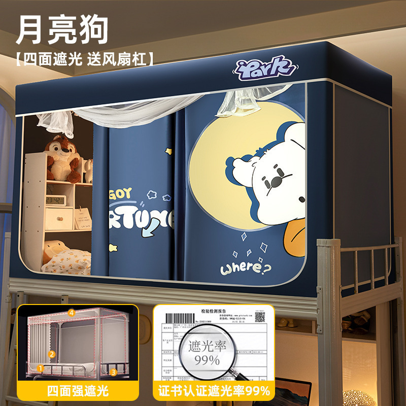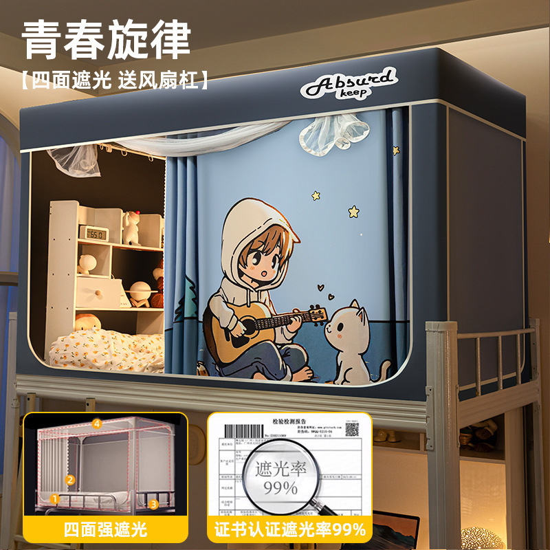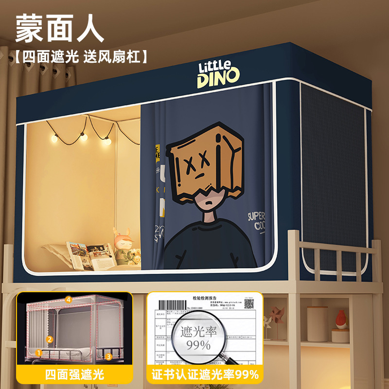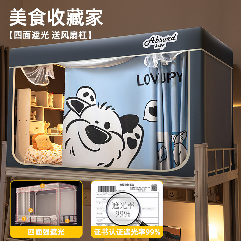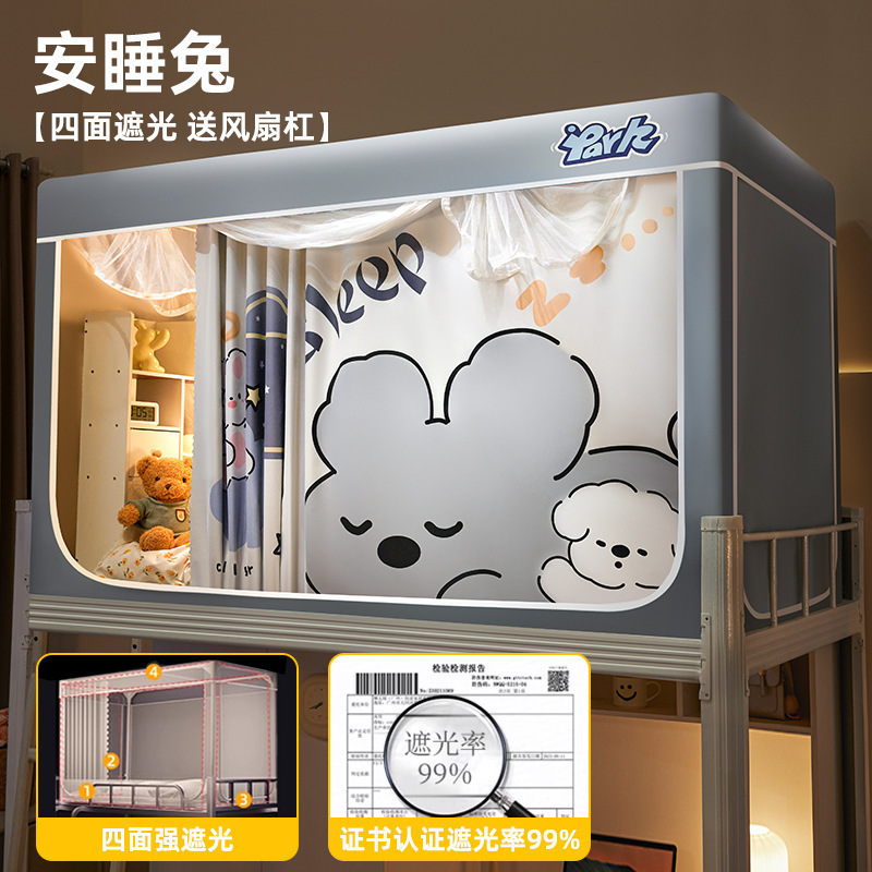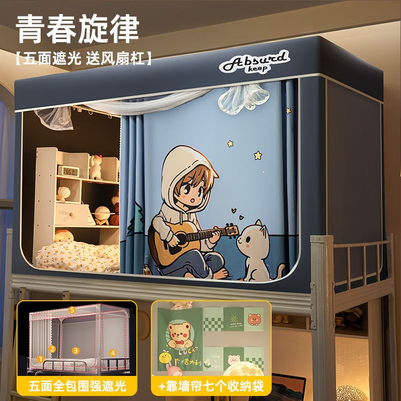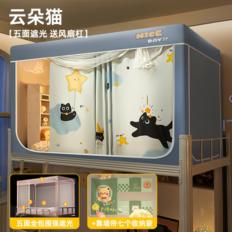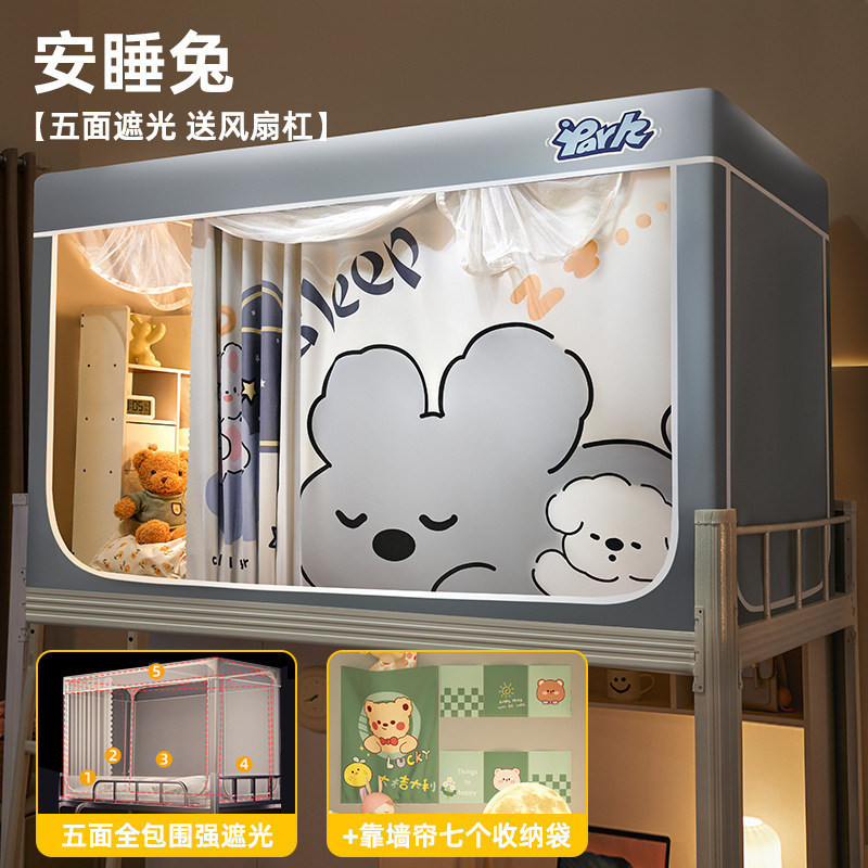 침대커튼과 모기장이 일체형으로 강력한 차광 기능을 갖춘 대학 기숙사 전용 올인클루시브 폐쇄형 기숙사 침대 커튼, 이층침대용
