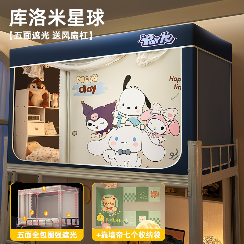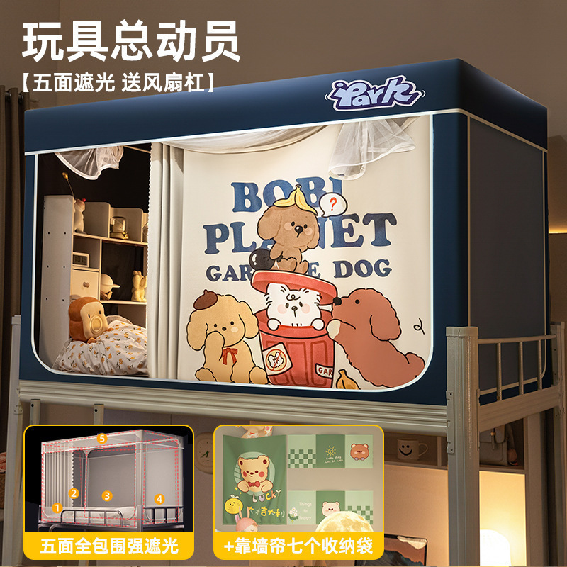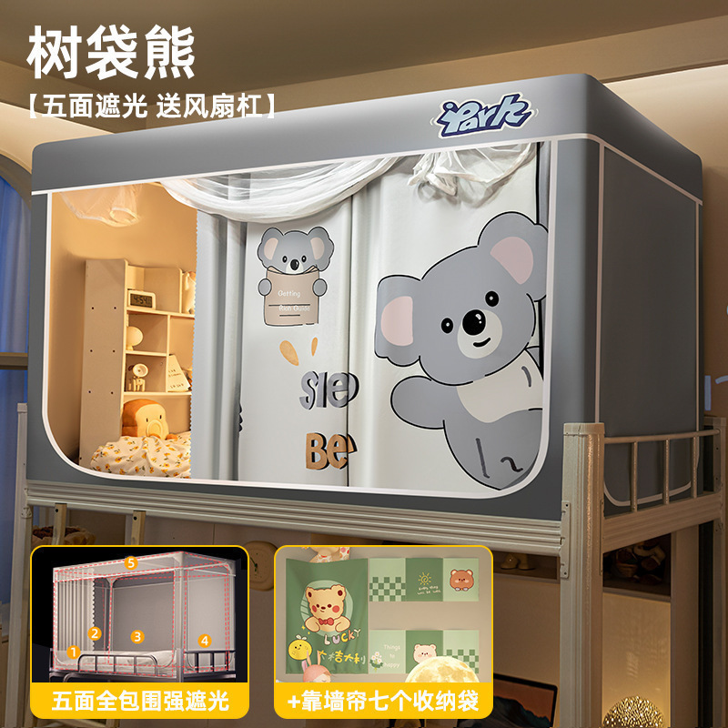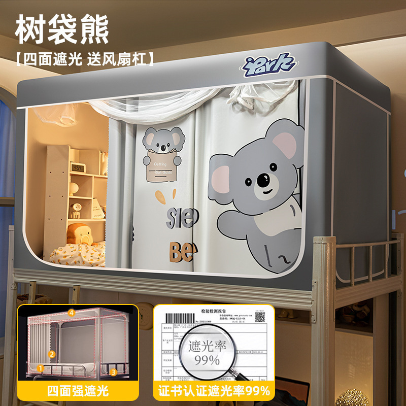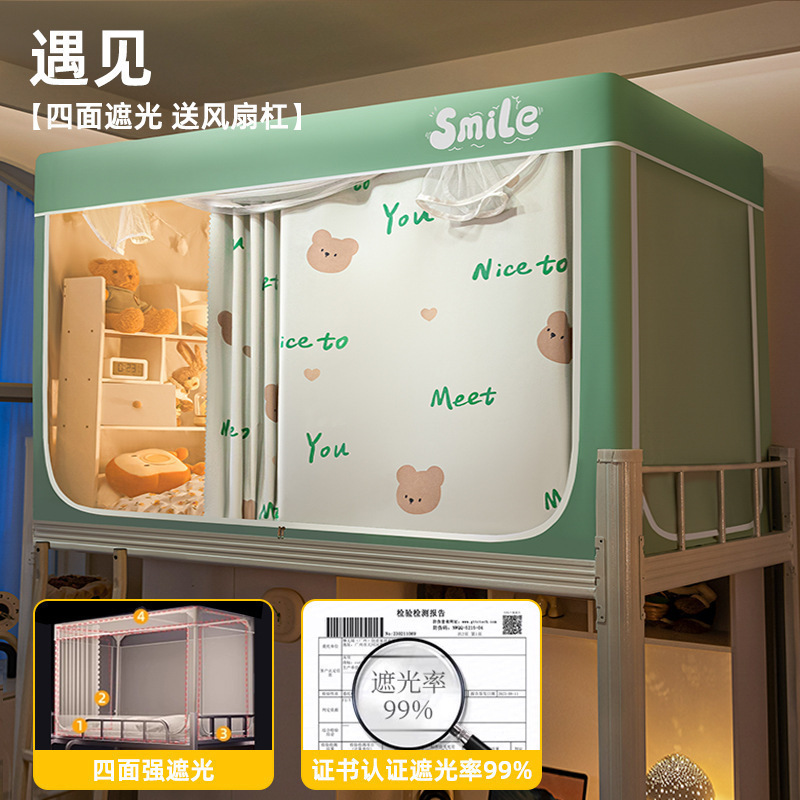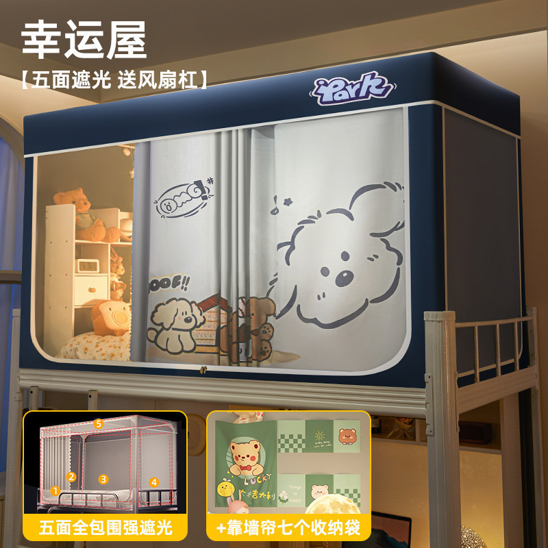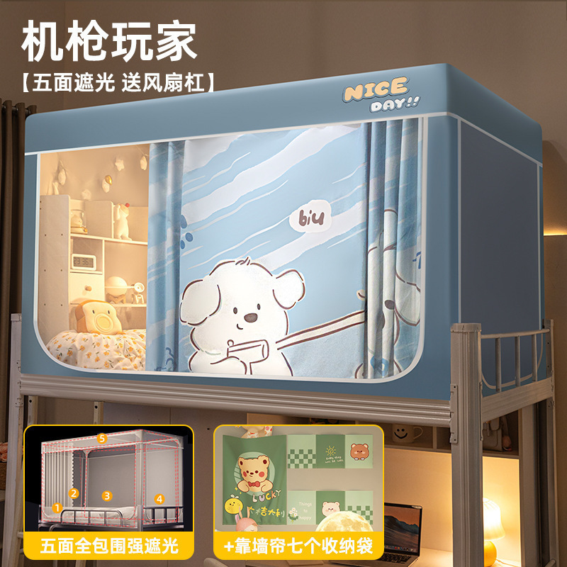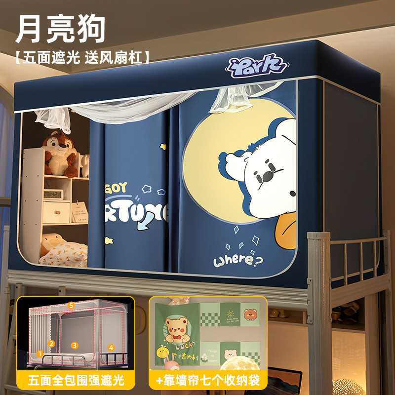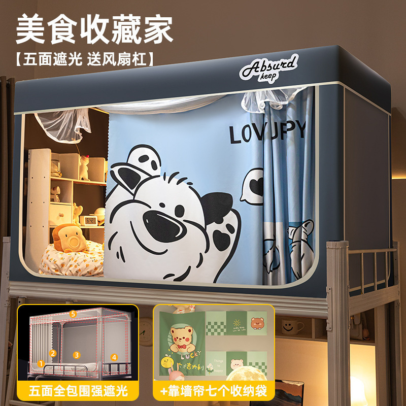 침대커튼과 모기장이 일체형으로 강력한 차광 기능을 갖춘 대학 기숙사 전용 올인클루시브 폐쇄형 기숙사 침대 커튼, 이층침대용