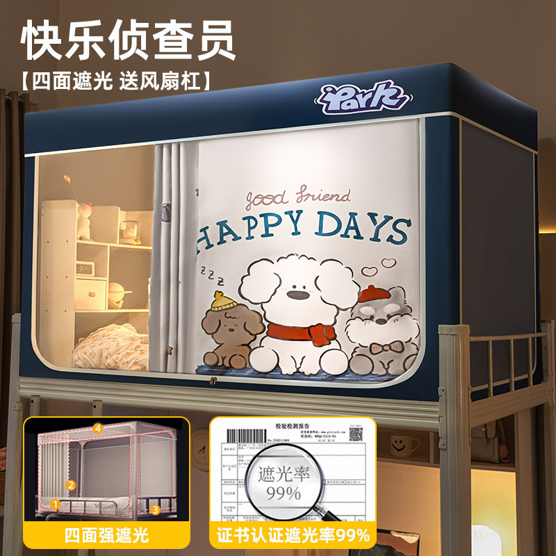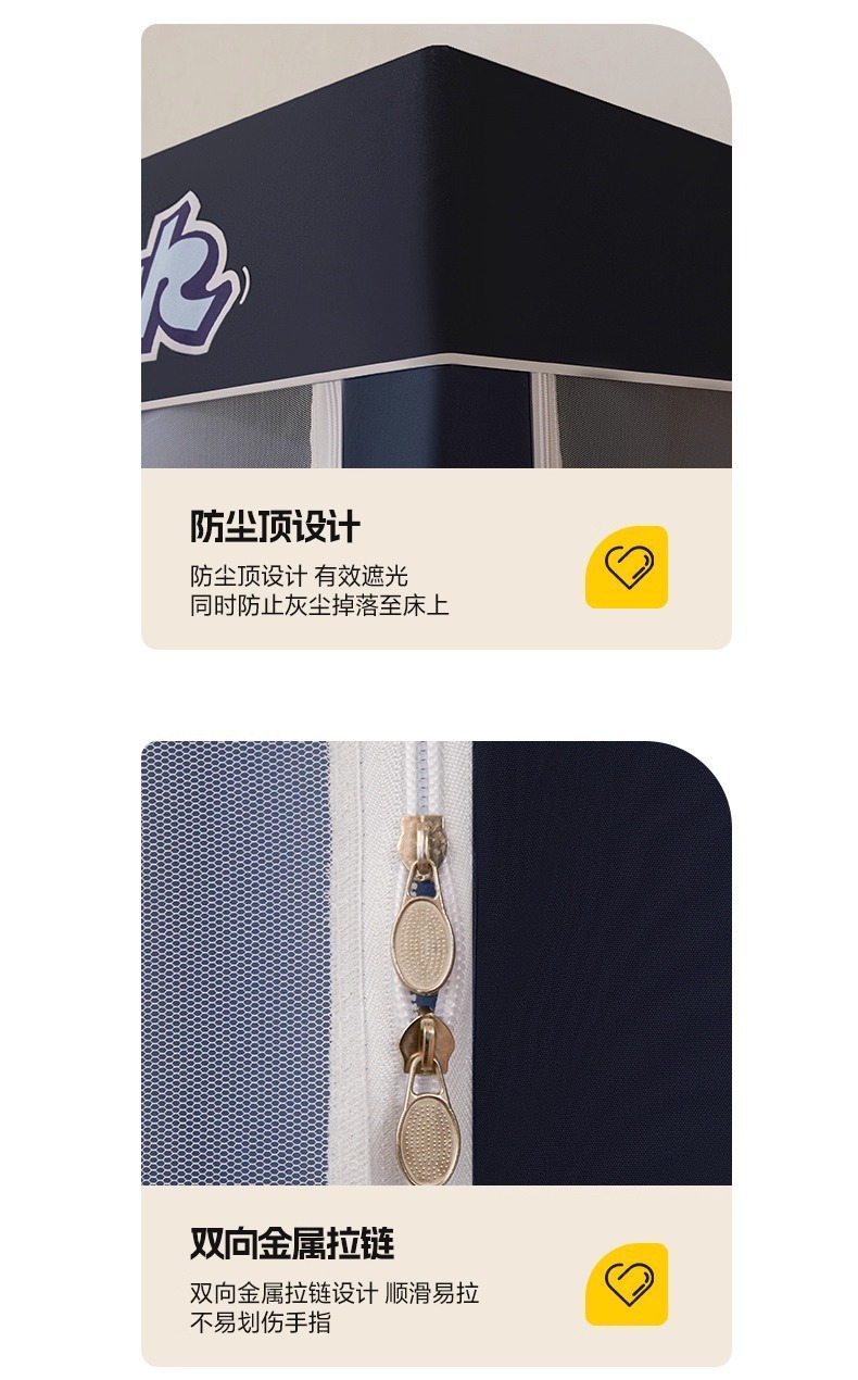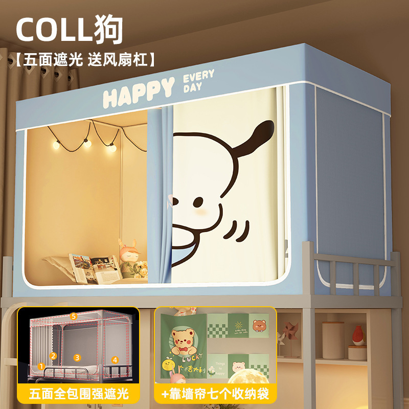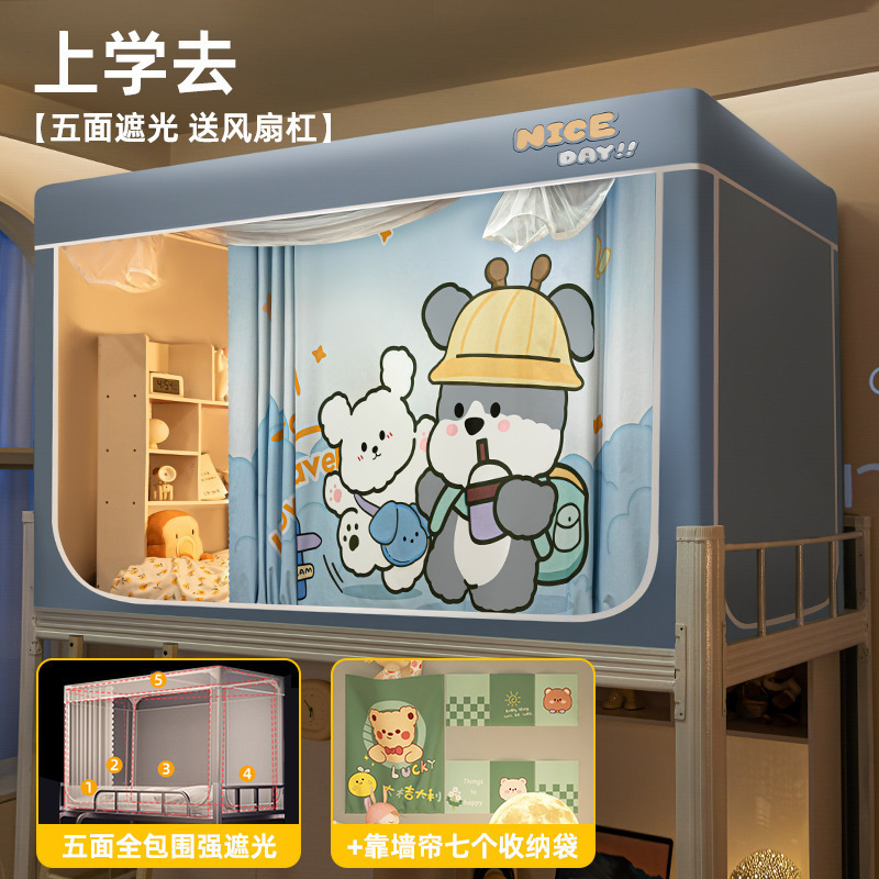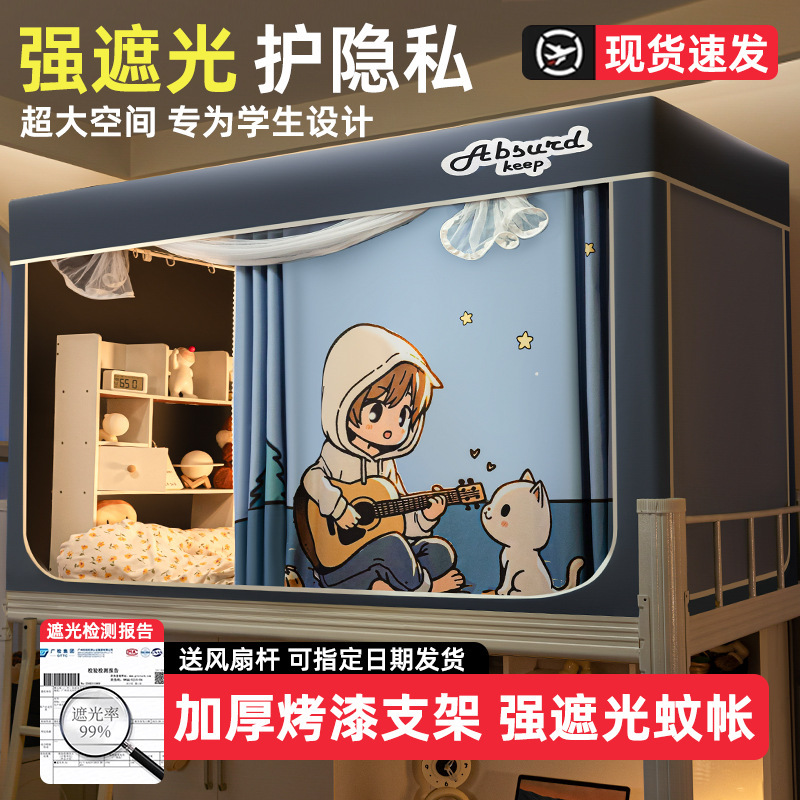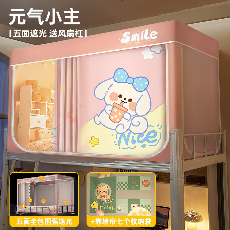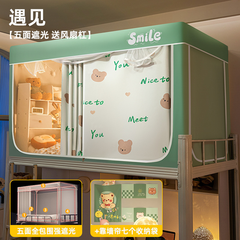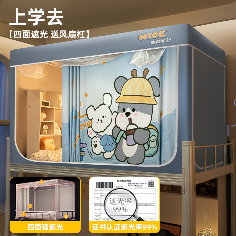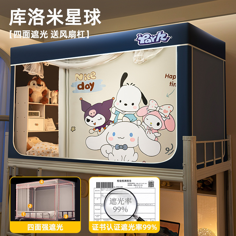 침대커튼과 모기장이 일체형으로 강력한 차광 기능을 갖춘 대학 기숙사 전용 올인클루시브 폐쇄형 기숙사 침대 커튼, 이층침대용