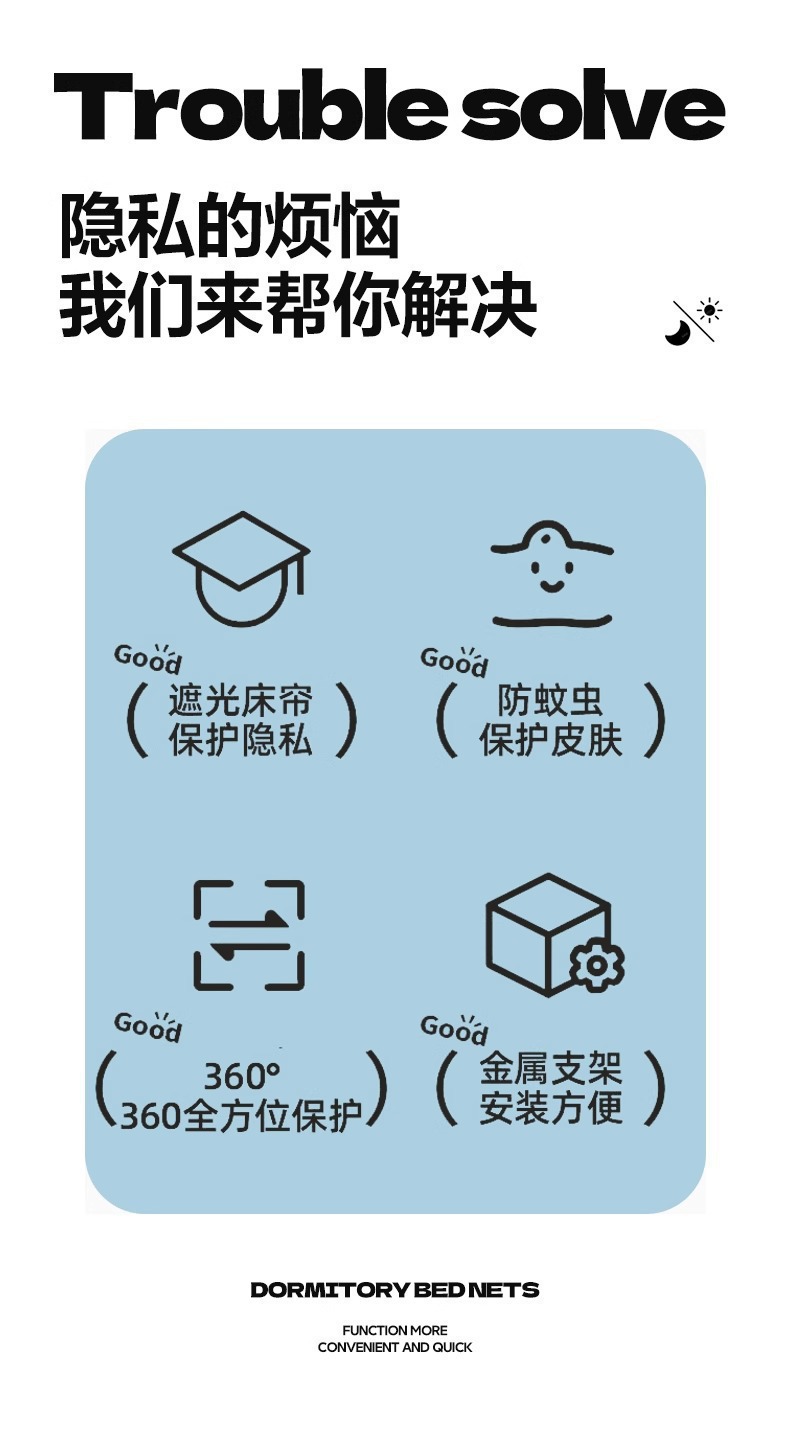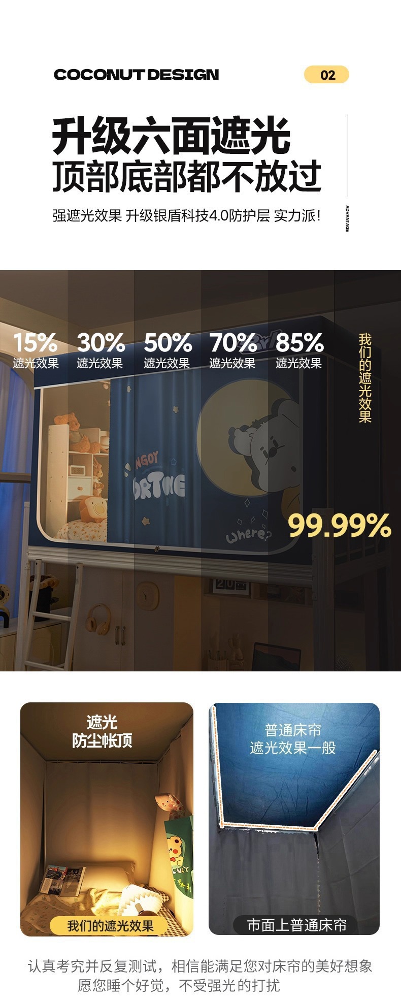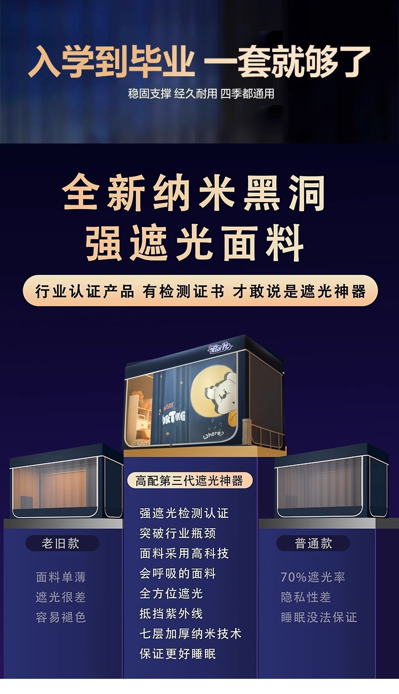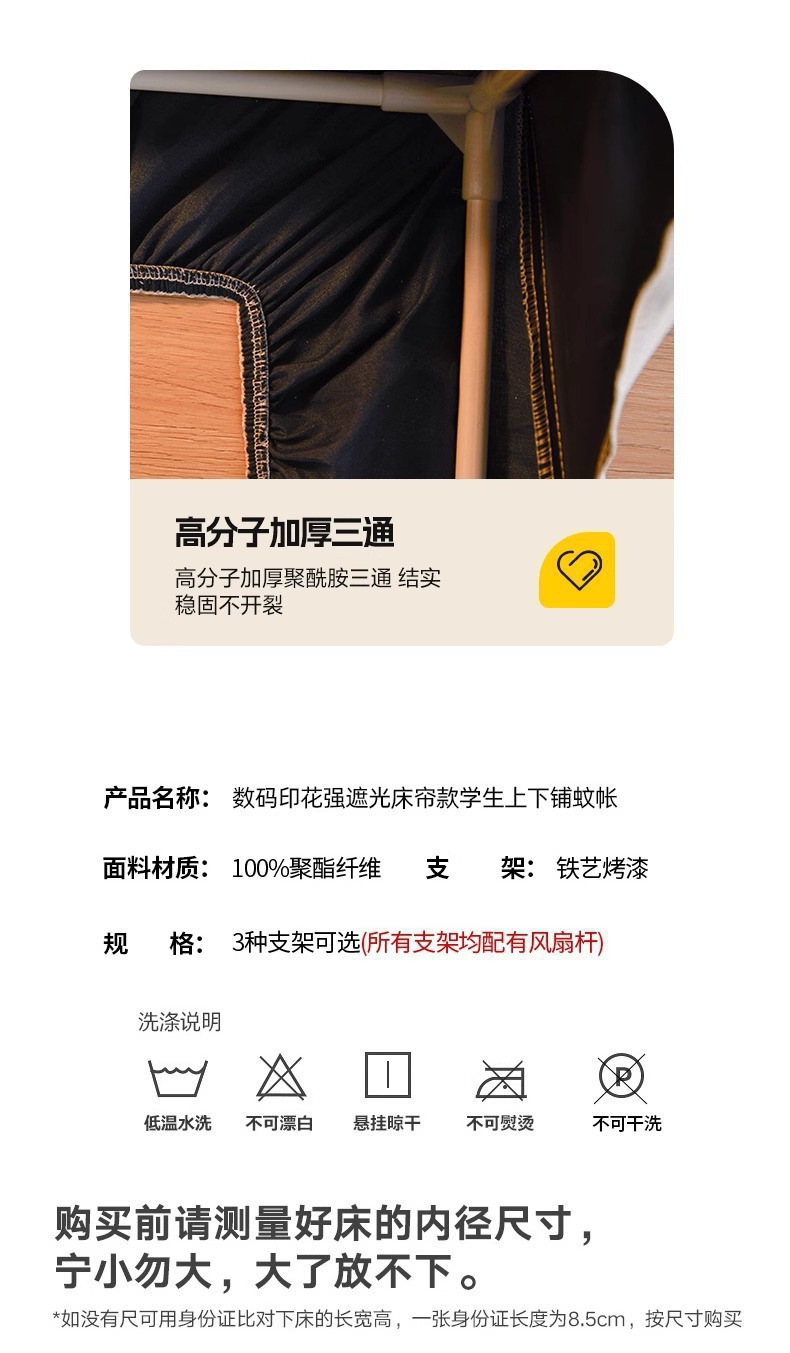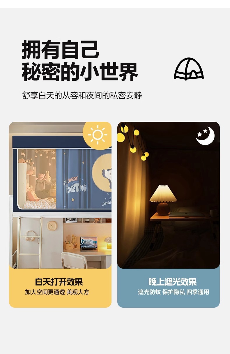 침대커튼과 모기장이 일체형으로 강력한 차광 기능을 갖춘 대학 기숙사 전용 올인클루시브 폐쇄형 기숙사 침대 커튼, 이층침대용