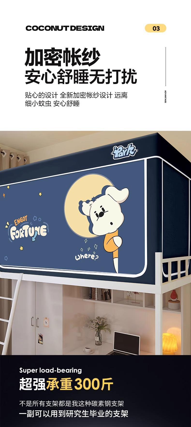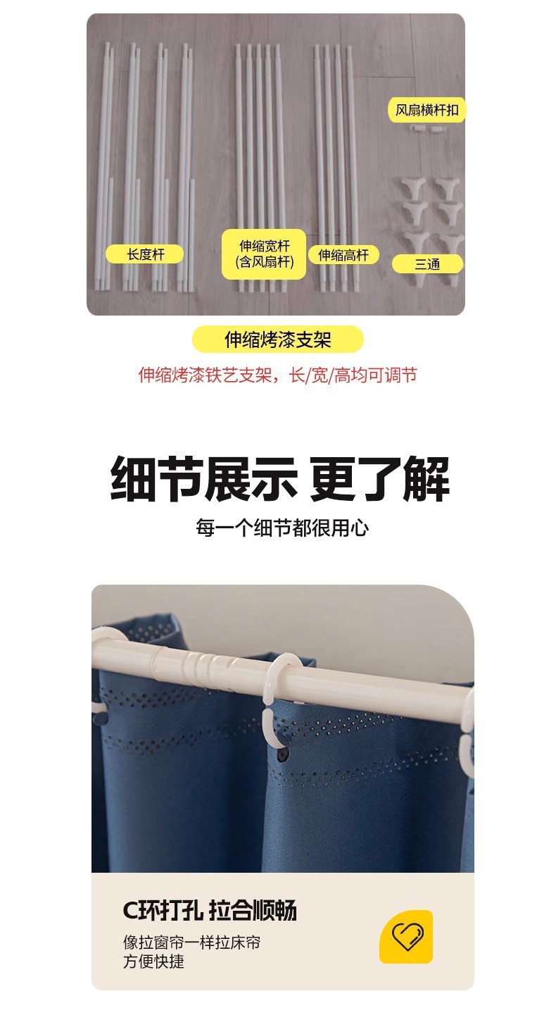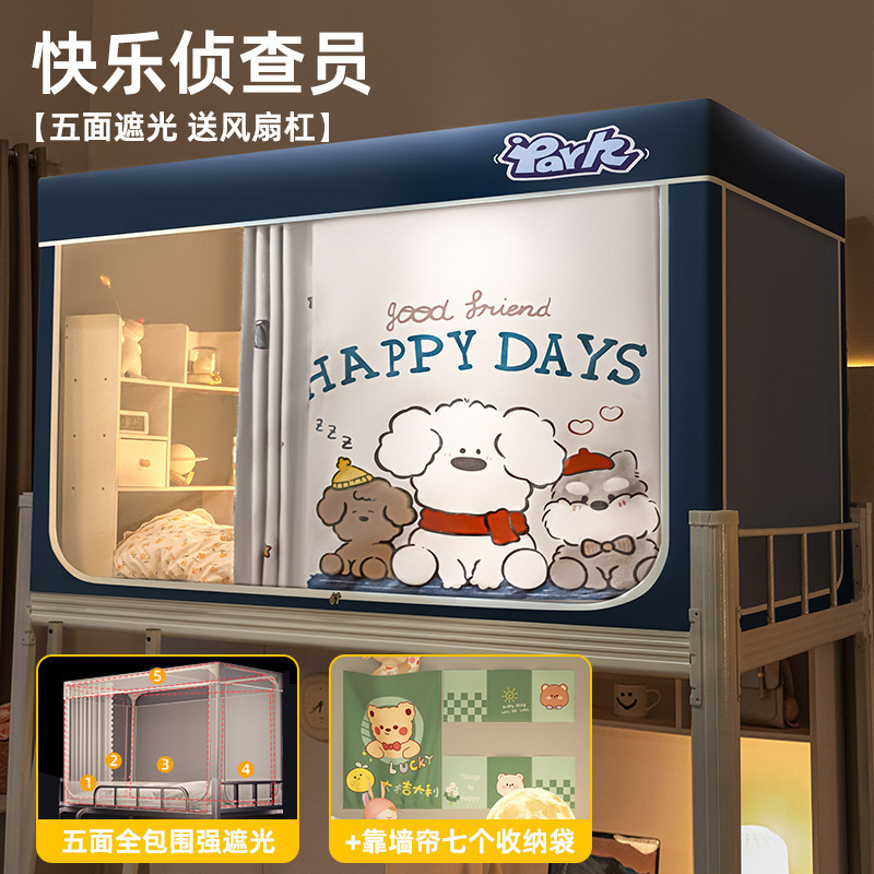 침대커튼과 모기장이 일체형으로 강력한 차광 기능을 갖춘 대학 기숙사 전용 올인클루시브 폐쇄형 기숙사 침대 커튼, 이층침대용스토어 가기