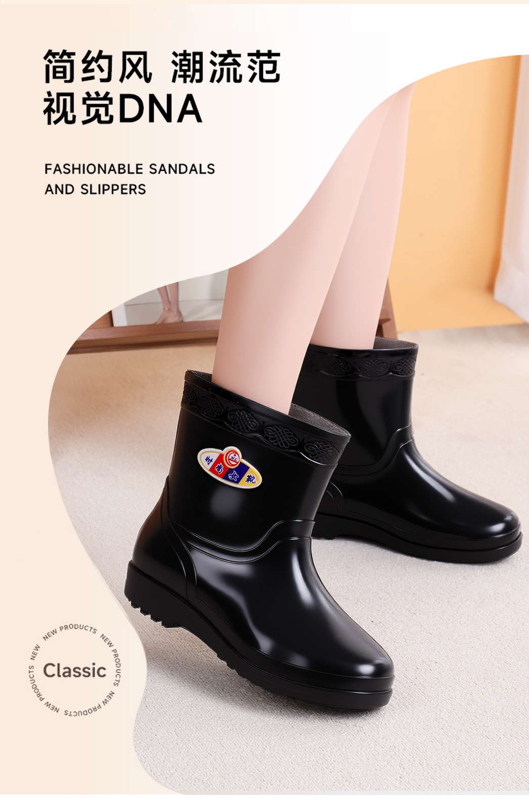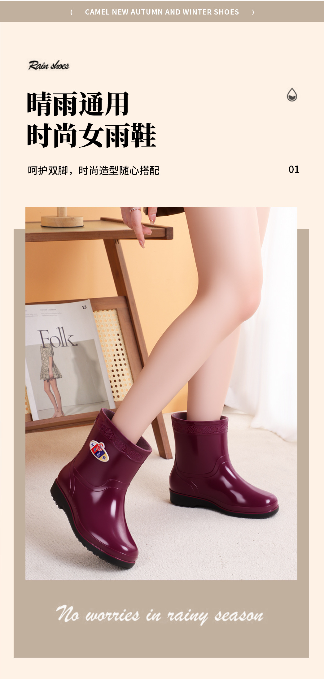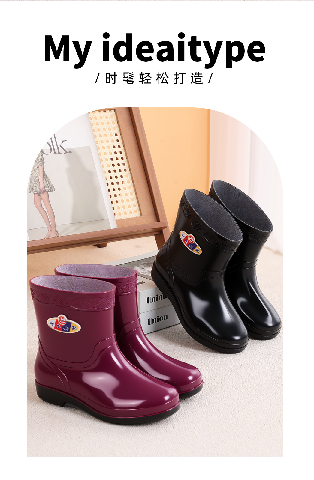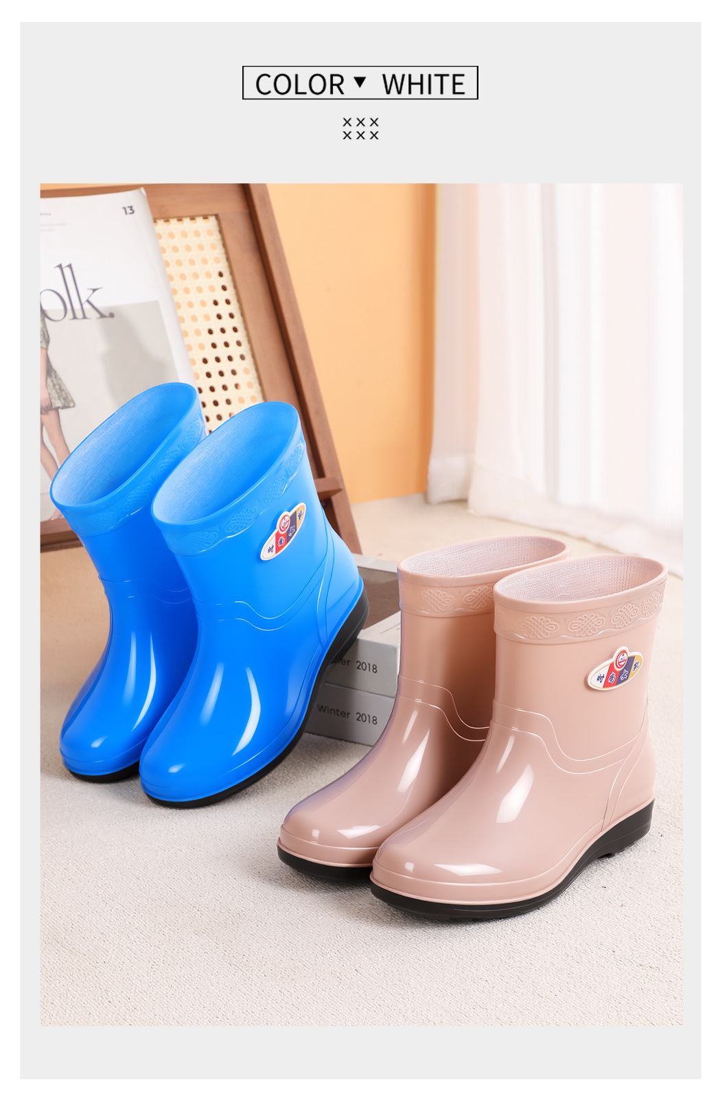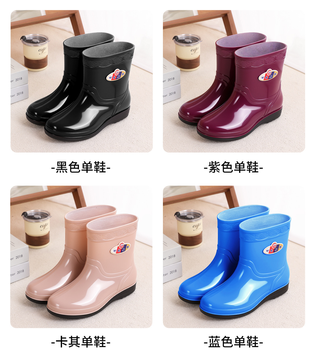 여성을위한 가을, 겨울 장화 미끄럼 방지 중간 튜브 두꺼운 바닥 미끄럼 방지 방수 신발 여성용 성인 작업 장화 도매