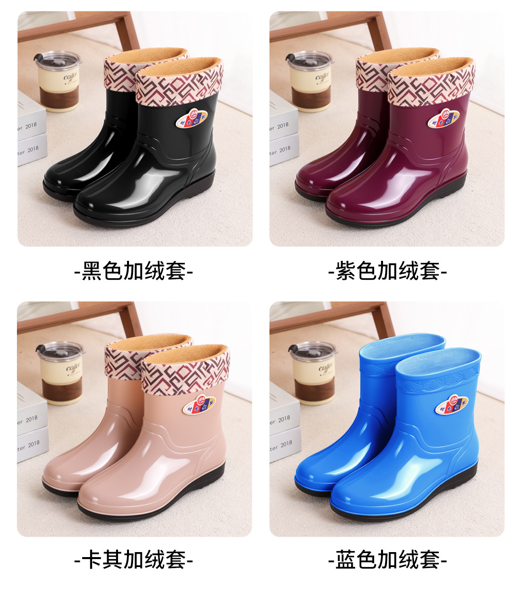 여성을위한 가을, 겨울 장화 미끄럼 방지 중간 튜브 두꺼운 바닥 미끄럼 방지 방수 신발 여성용 성인 작업 장화 도매스토어 가기