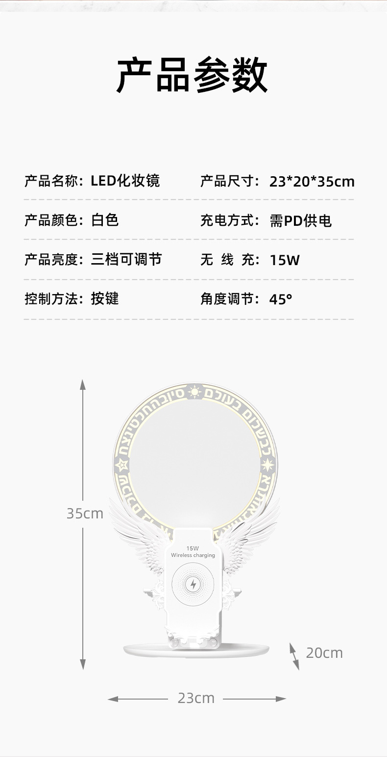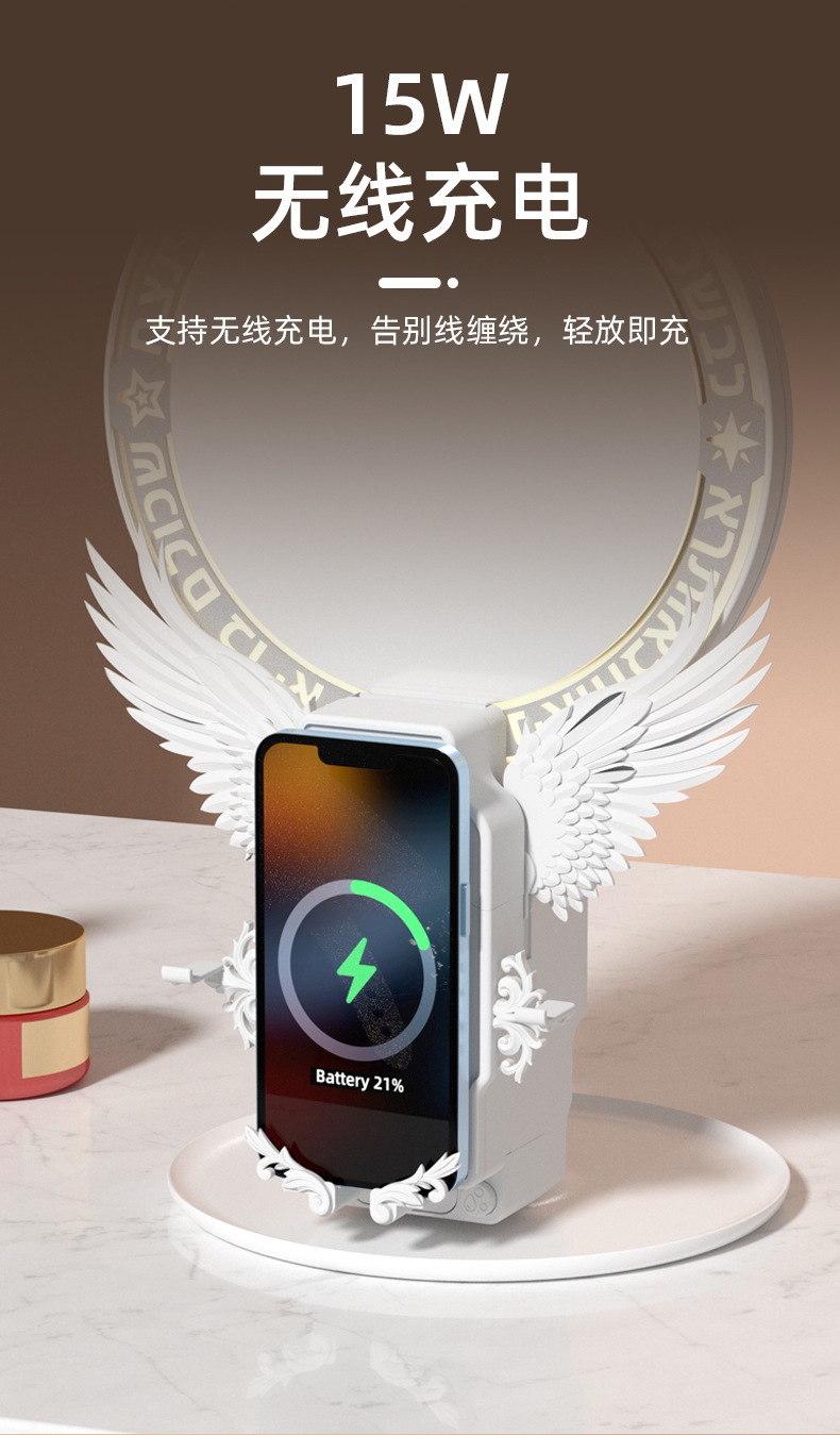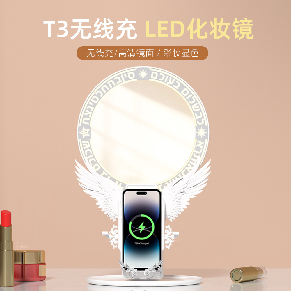 국경 간 인기 판매 무선 충전 LED 화장 거울 휴대용 촬영 보조 조명 휴대 전화 홀더 라이트 뷰티 미러가있는 셀카
