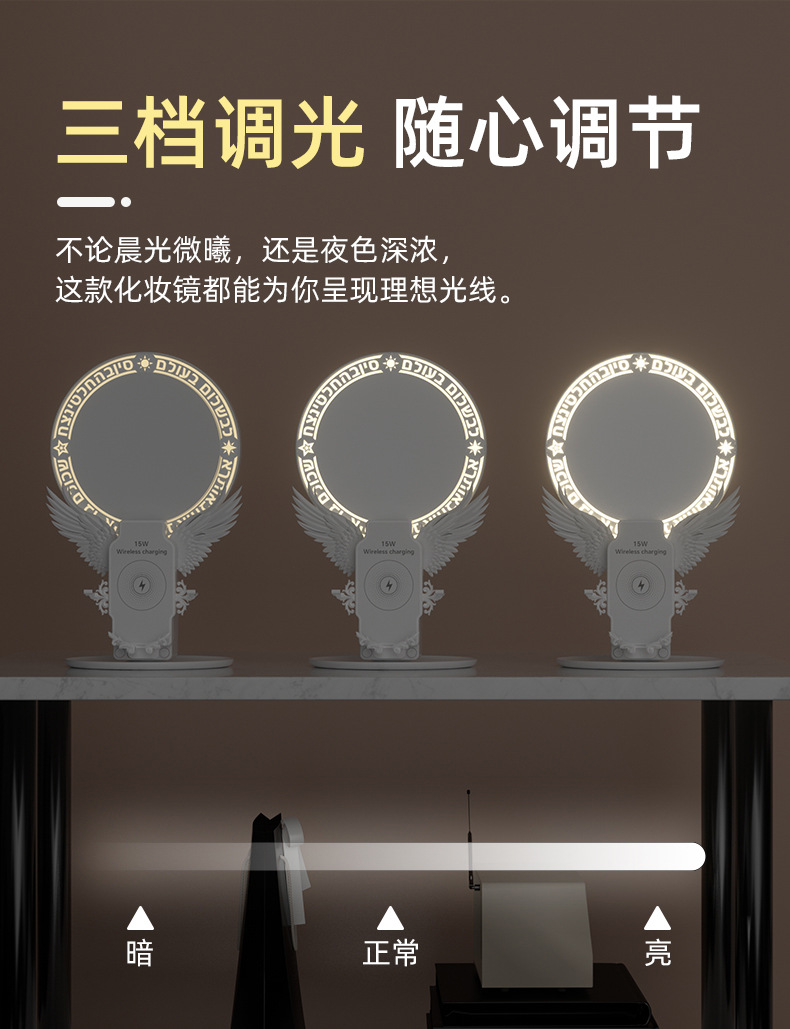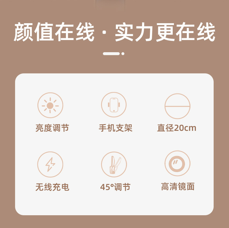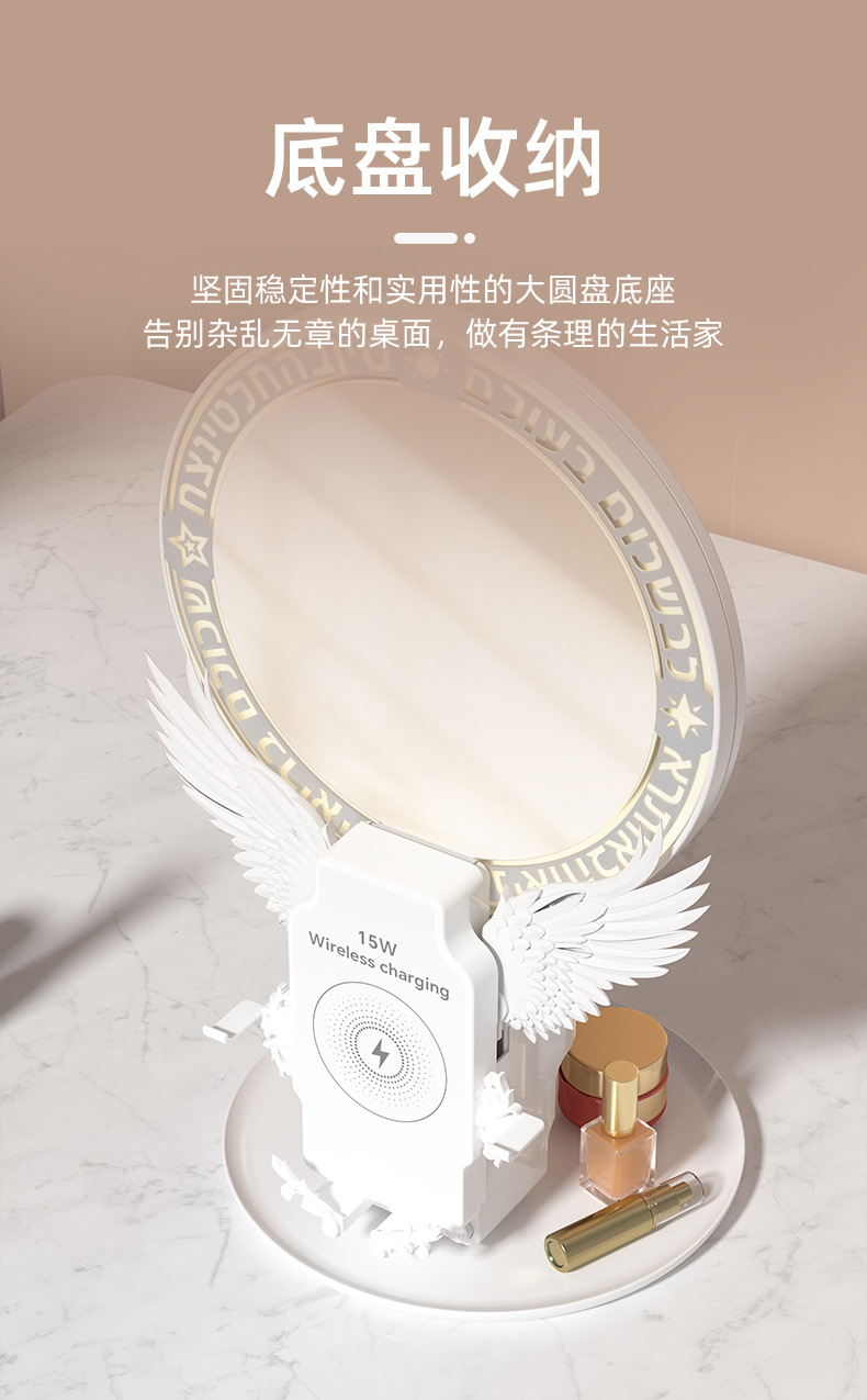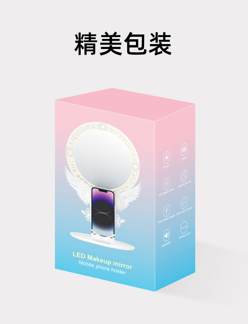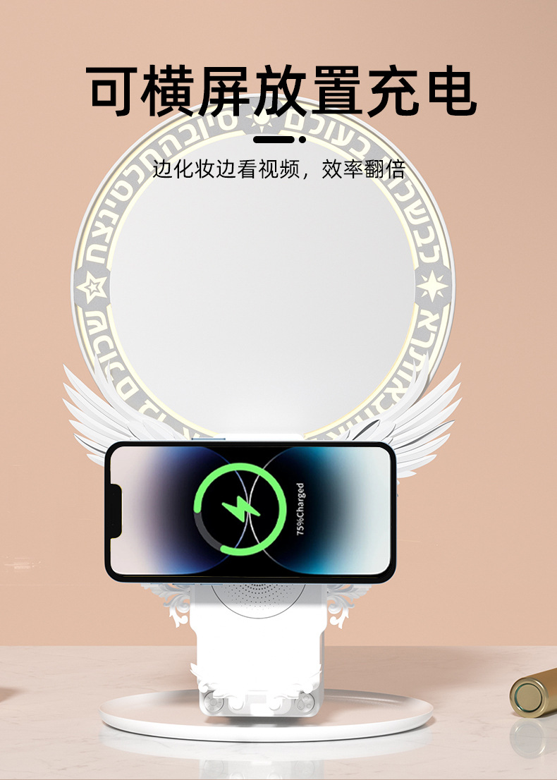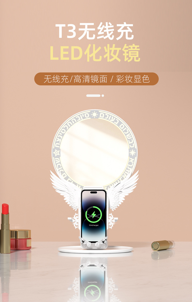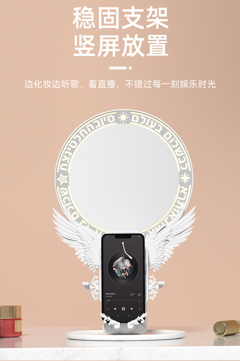 국경 간 인기 판매 무선 충전 LED 화장 거울 휴대용 촬영 보조 조명 휴대 전화 홀더 라이트 뷰티 미러가있는 셀카스토어 가기