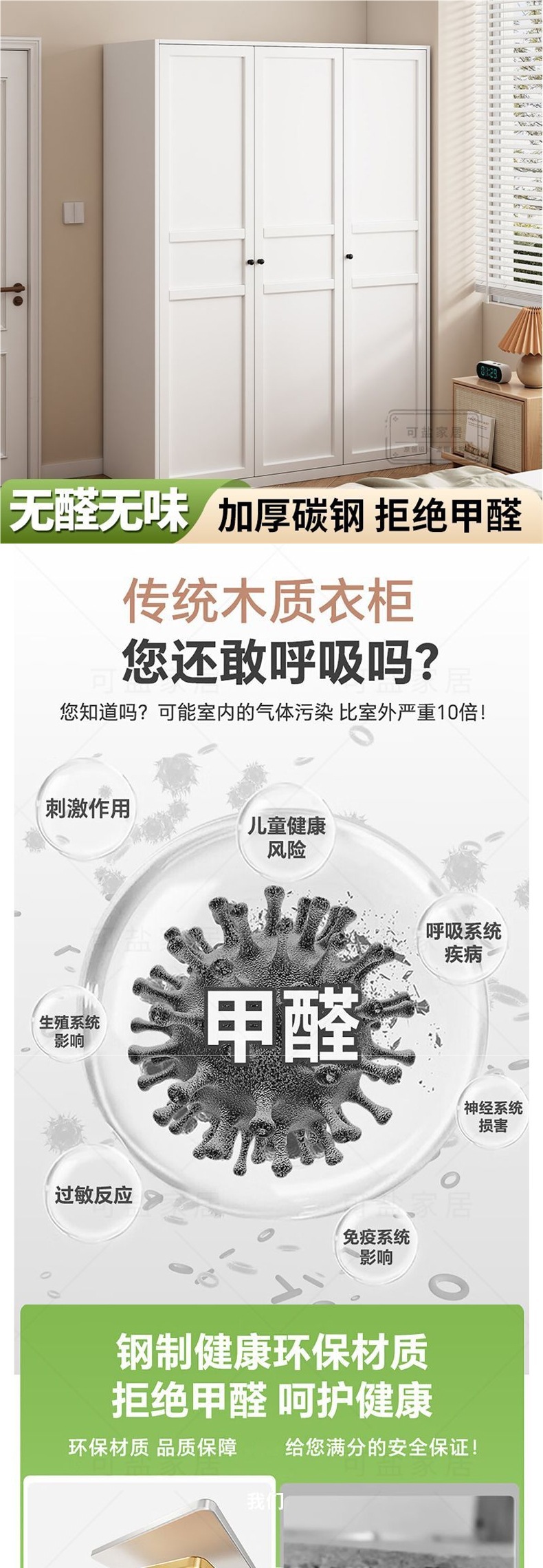 알데히드가 없는 철제 옷장 침실 어린이 방 임대 철제 대형 옷장 서랍 포함 무역 공장 직접 공급 도매