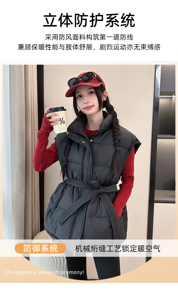 여성을위한 허리 코튼 조끼 조끼 가을, 겨울 새로운 스탠드 칼라 2025 한국 스타일 느슨한 유행 두꺼운 외국 스타일 재킷