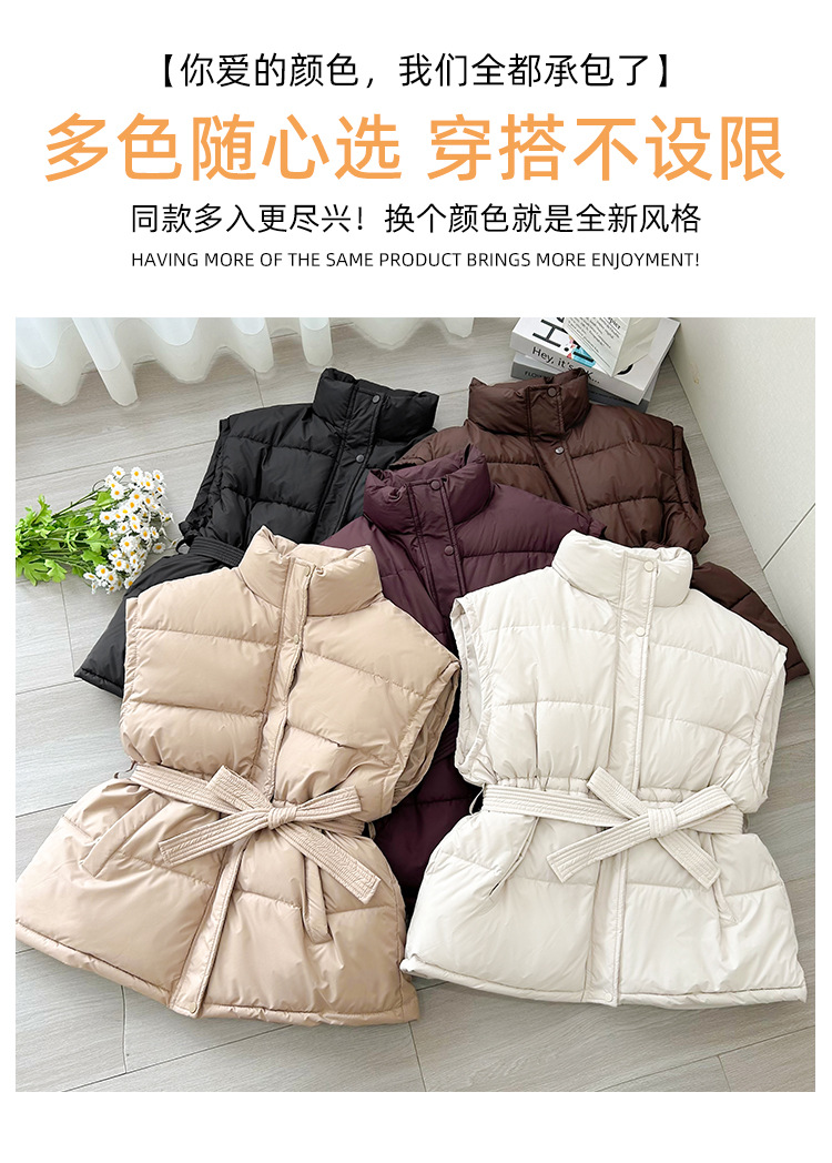 여성을위한 허리 코튼 조끼 조끼 가을, 겨울 새로운 스탠드 칼라 2025 한국 스타일 느슨한 유행 두꺼운 외국 스타일 재킷스토어 가기