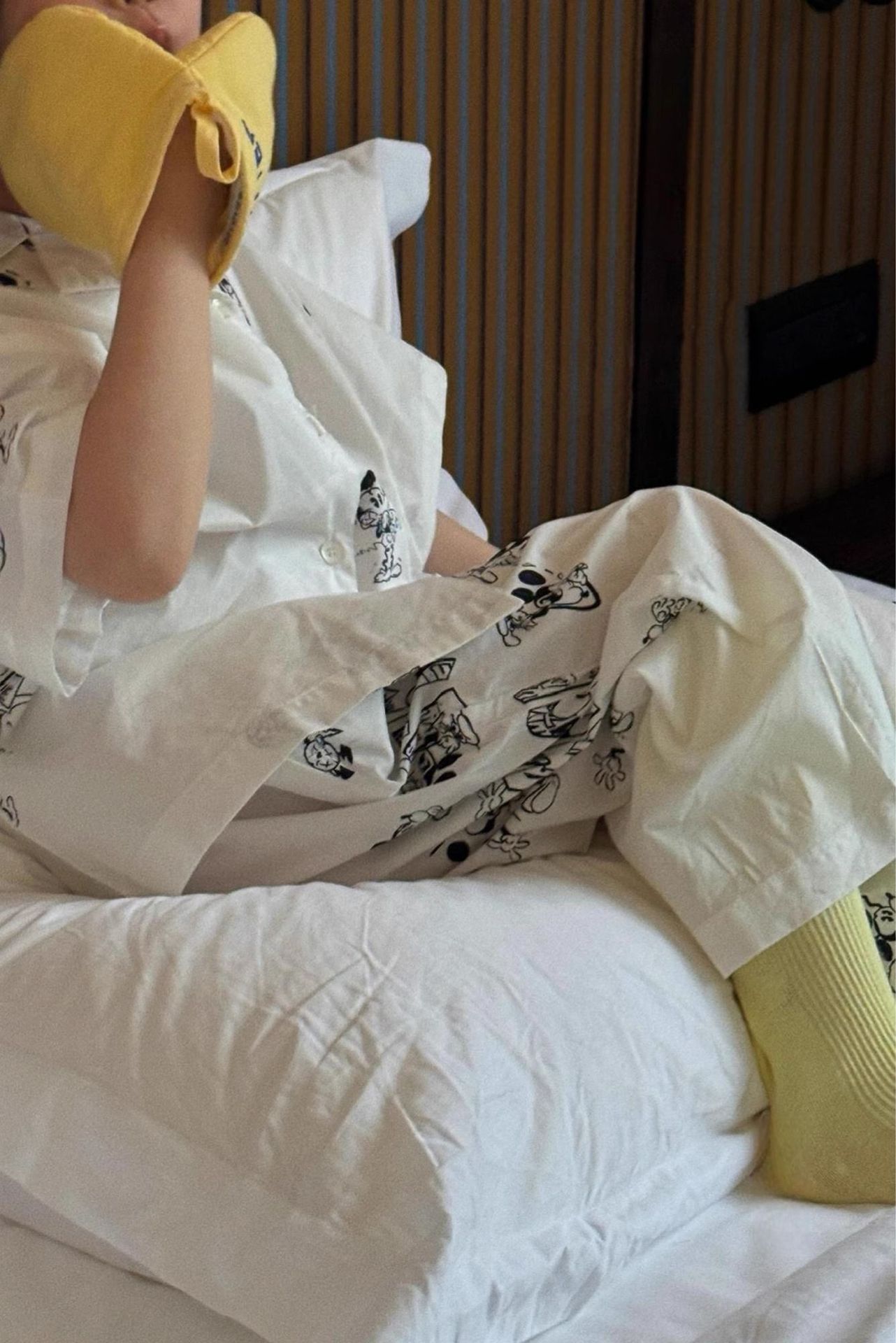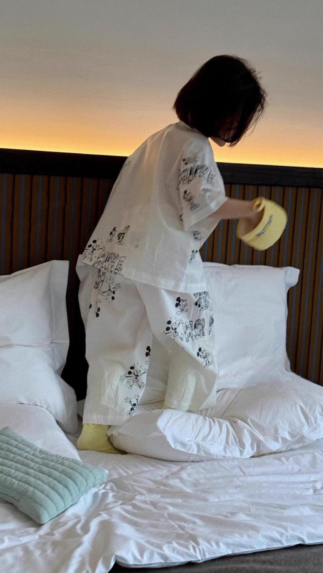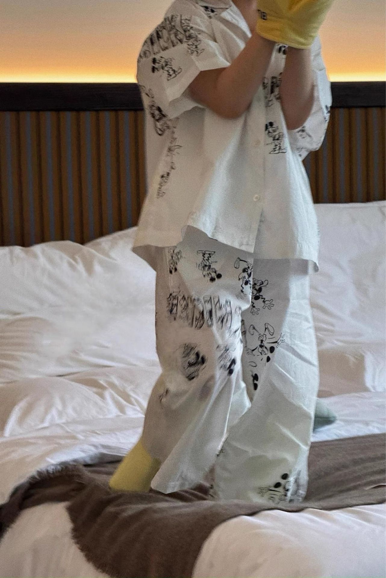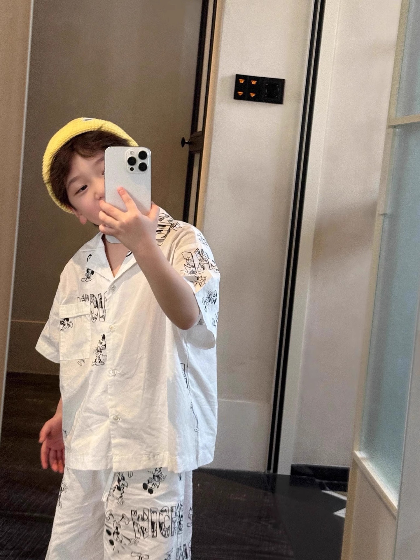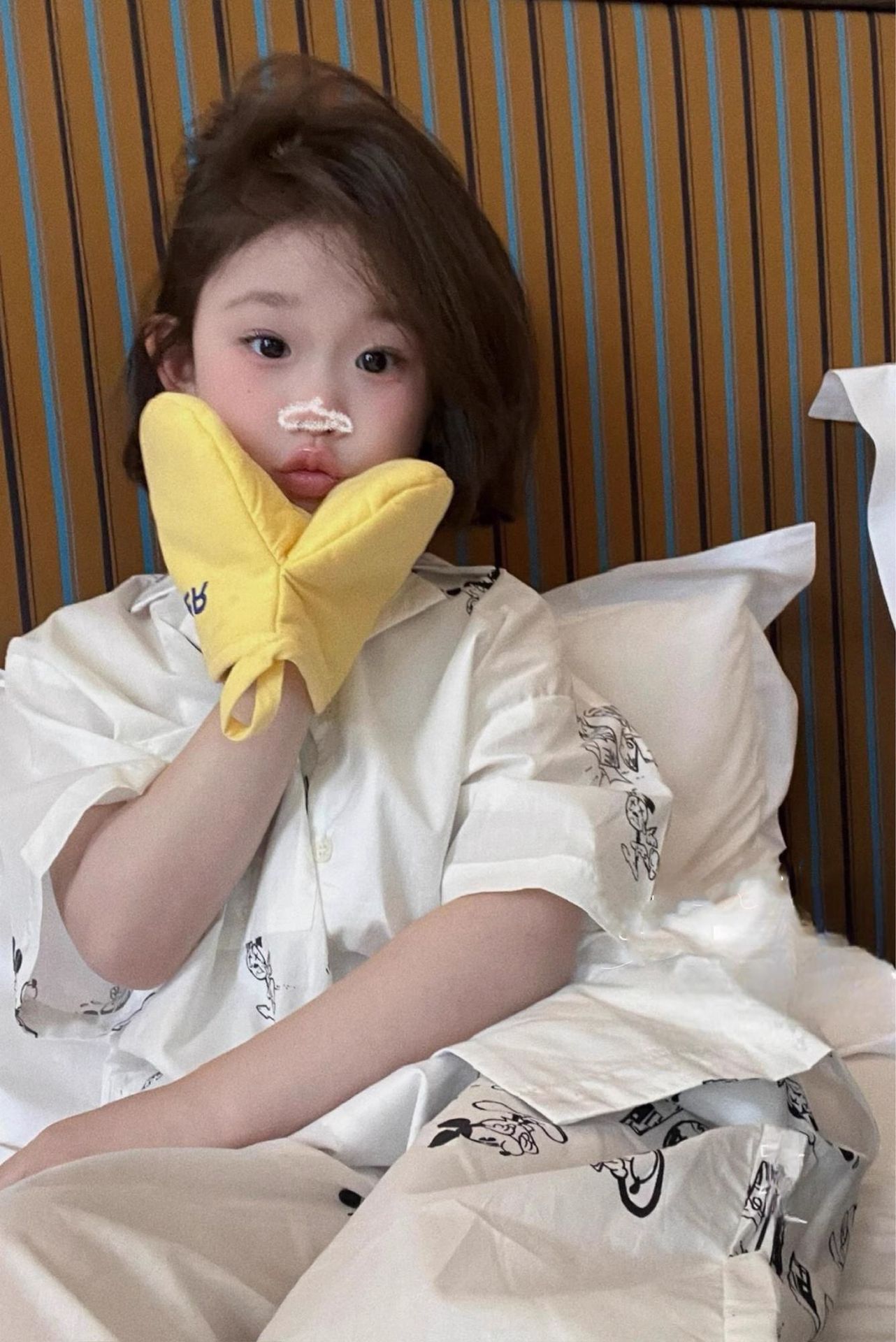 봄 여름 남녀 아동 잠옷, 만화 반팔 바지, 편안한 면 느낌의 에어컨 의류, 야외에서 착용 가능, 가정복 세트스토어 가기