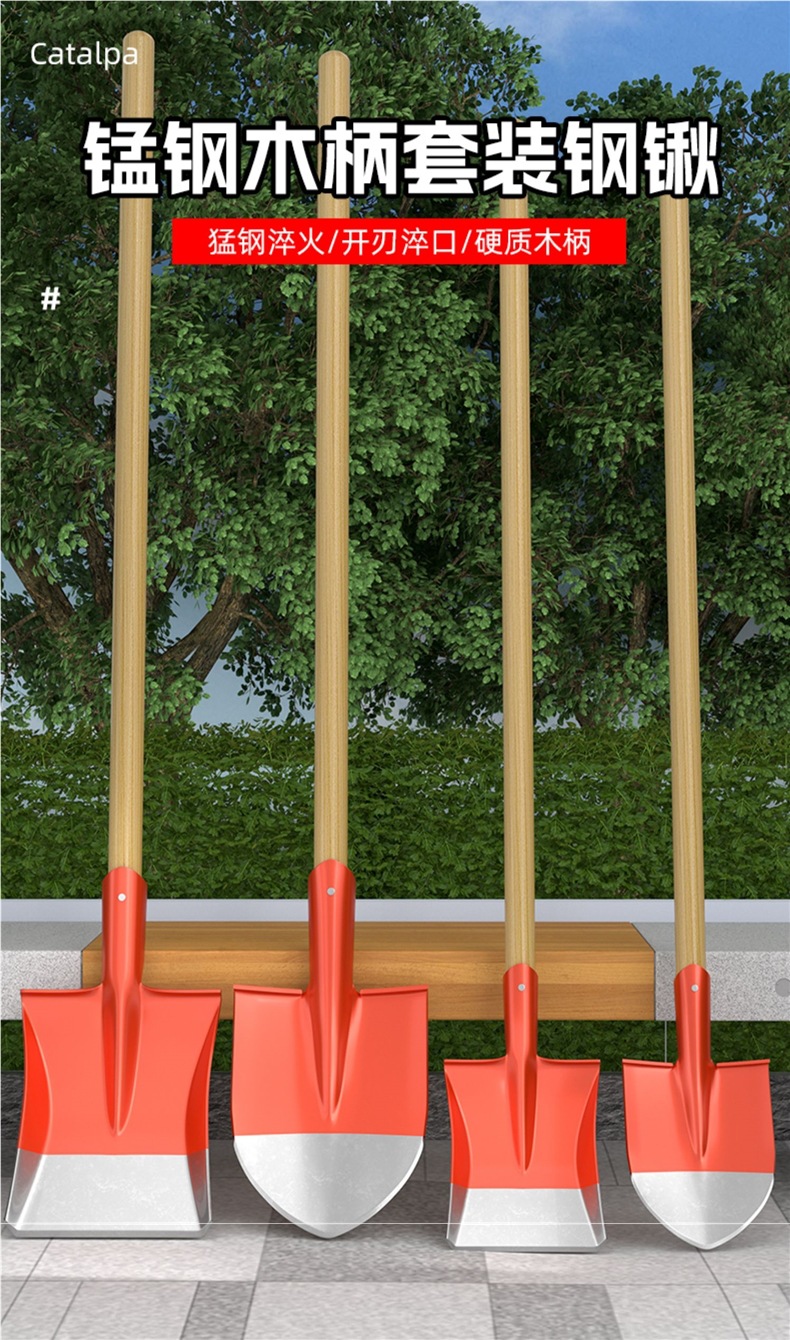 • 두꺼운 망간강 [중사각삽] + 1.2m 메뚜기나무 손잡이 (장갑포함)