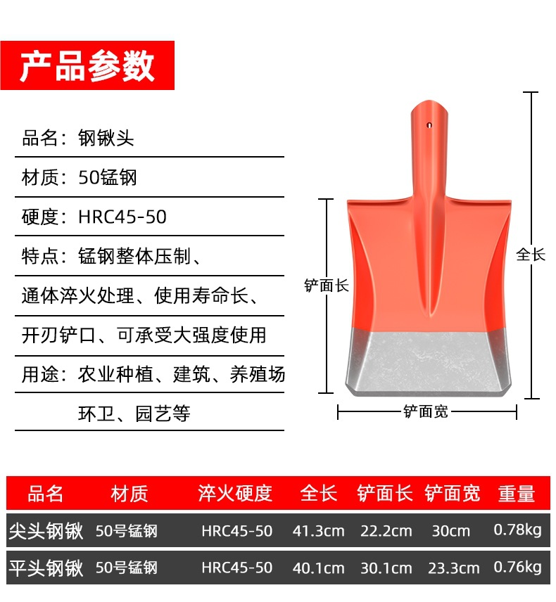 • [엔지니어링 등급(두꺼운 망간강)] 대형 뾰족한 삽(장갑 포함)