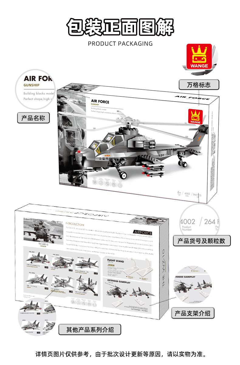 Wange 4001-5007 소년 조립 군사 전투기 헬리콥터 여객기 모델 입자 빌딩 블록 장난감스토어 가기