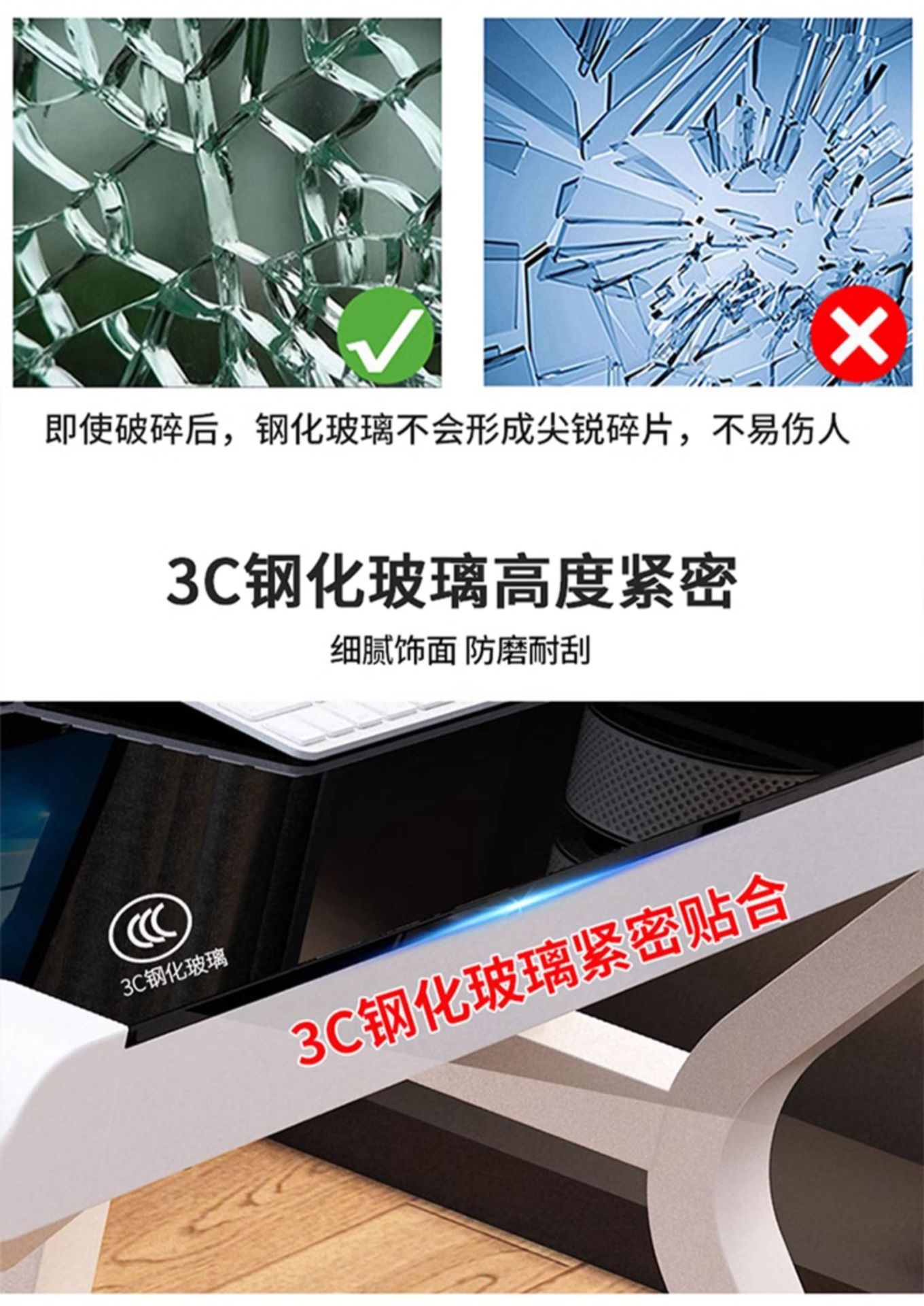 • 【업그레이드된 두께와 견고함】 120*60 블랙 유리 + 블랙 프레임