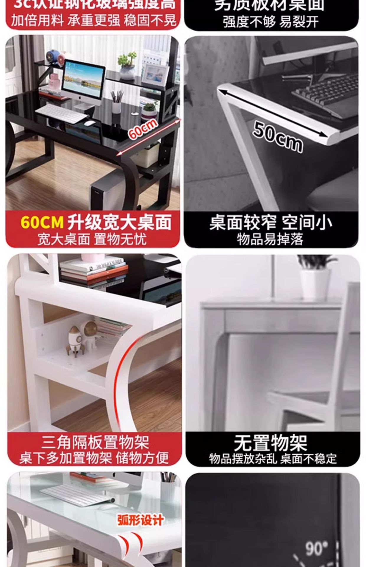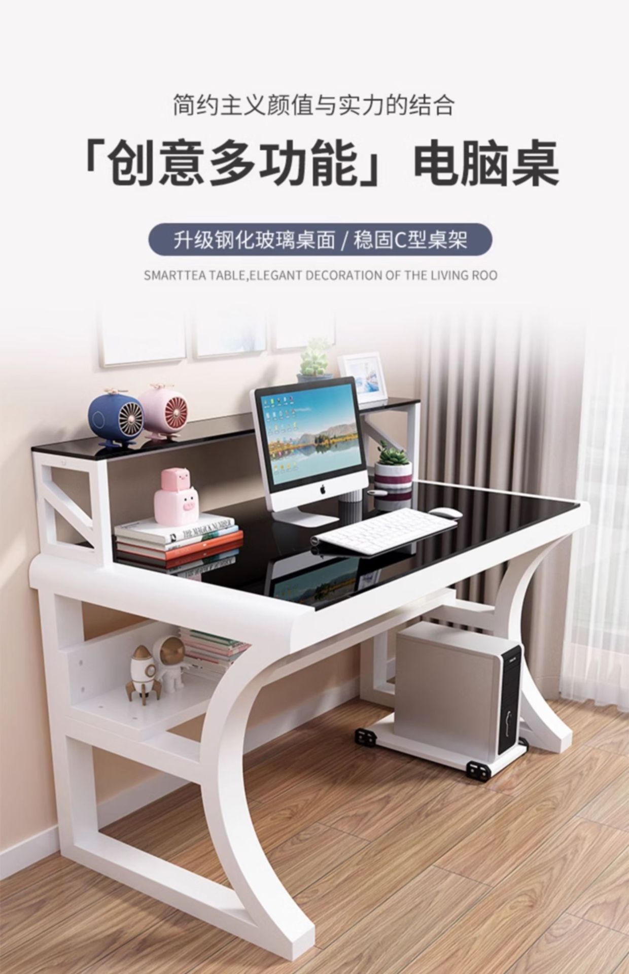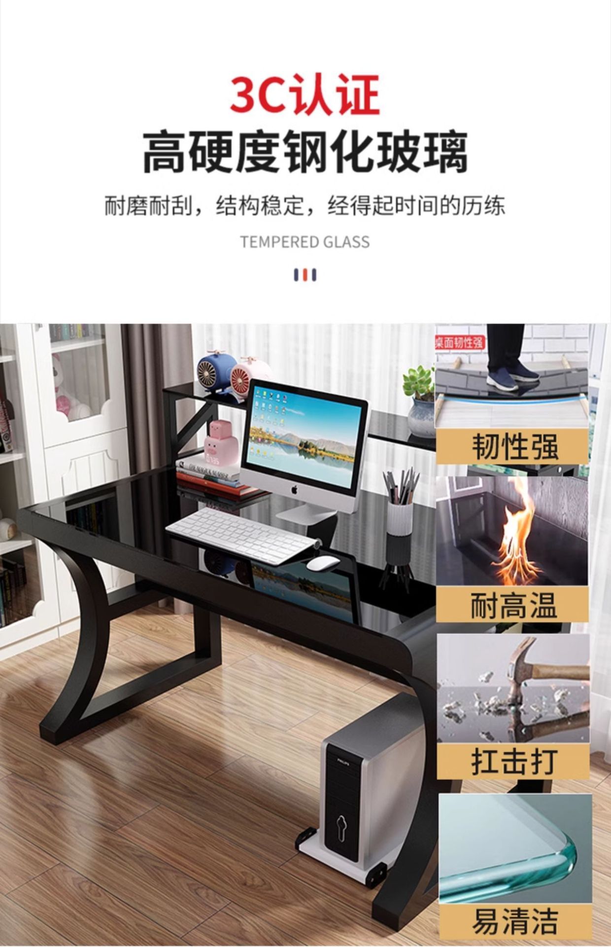 컴퓨터 책상 데스크탑 홈 현대 간단한 강화 유리 테이블 사무실 책상 학생 책상 책상 침실 L &스토어 가기