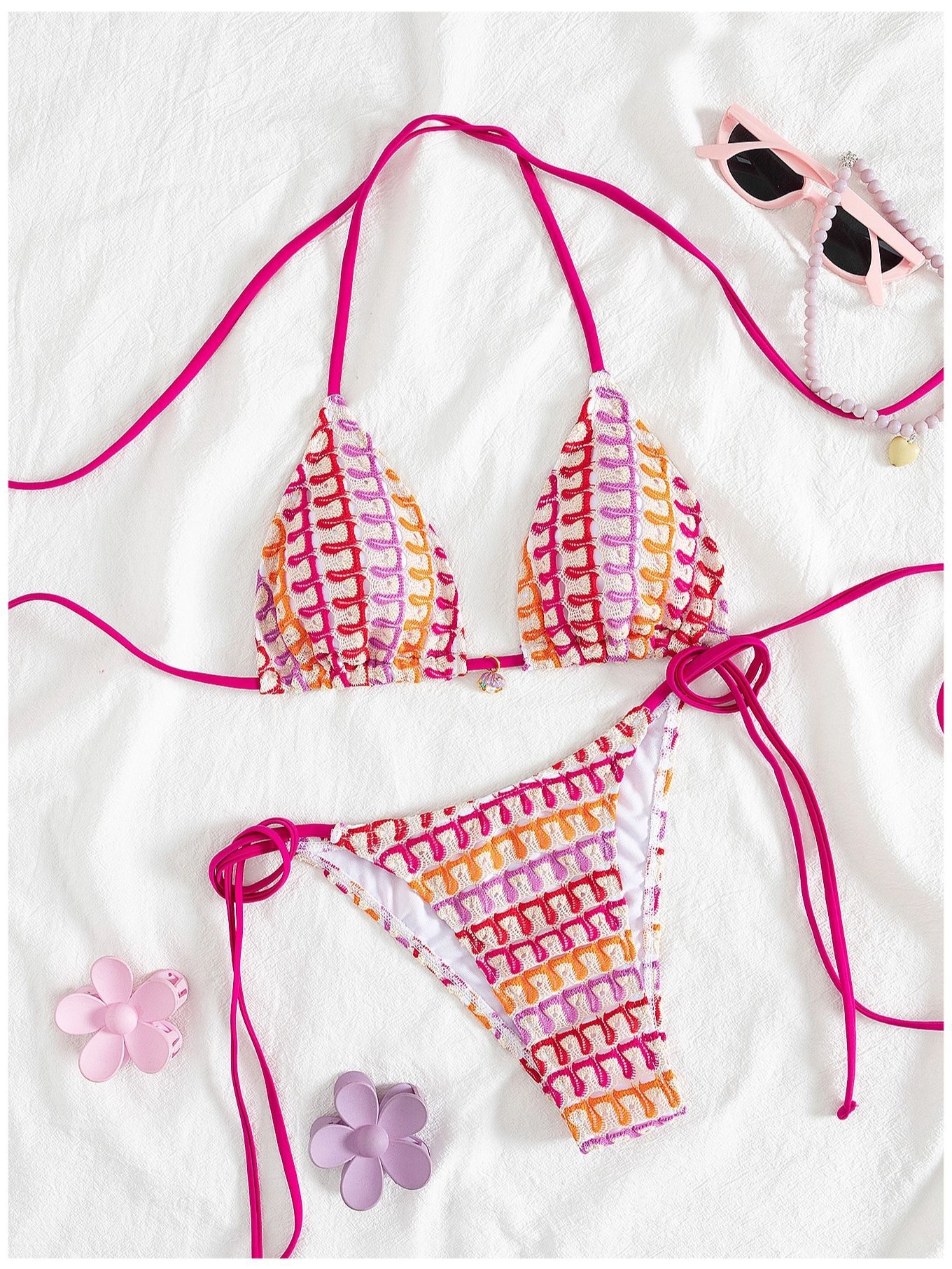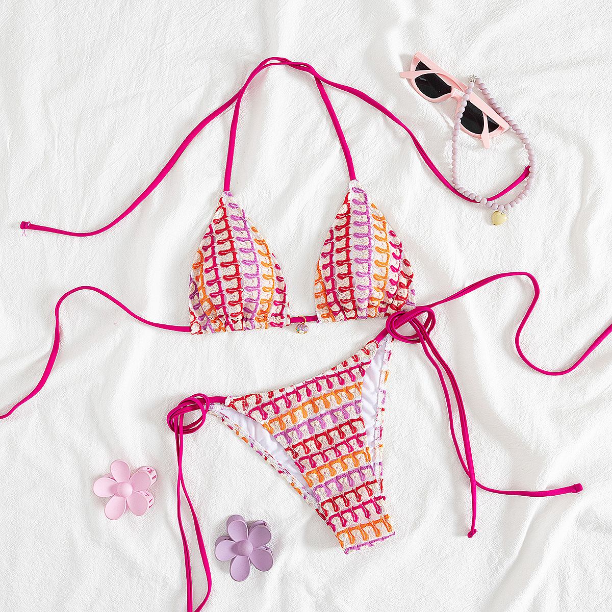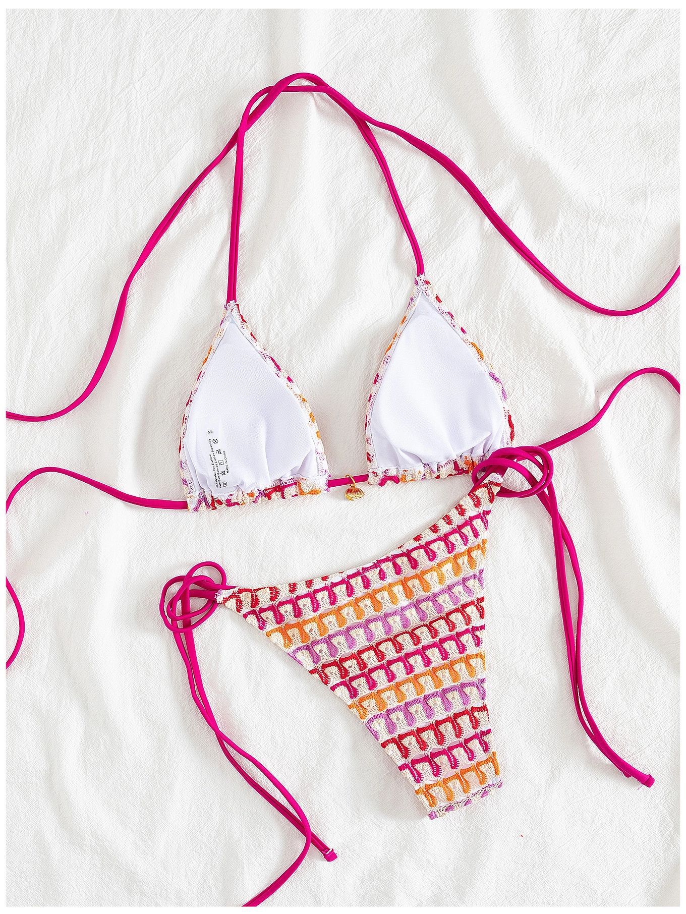 새로운 유럽과 미국의 국경 대외 무역 보헤미안 리조트 스타일 스트랩 비키니 스플릿 수영복 여성 복고풍 홀터넥 넥