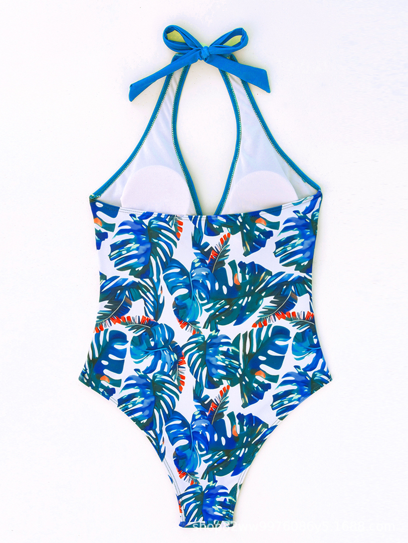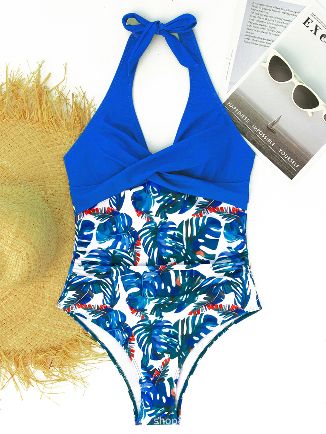 2025 새로운 원피스 일반 인쇄 대비 색상 유럽과 미국의 대외 무역 수영복 여성 섹시한 비키니 홀터넥 타이 수영복스토어 가기