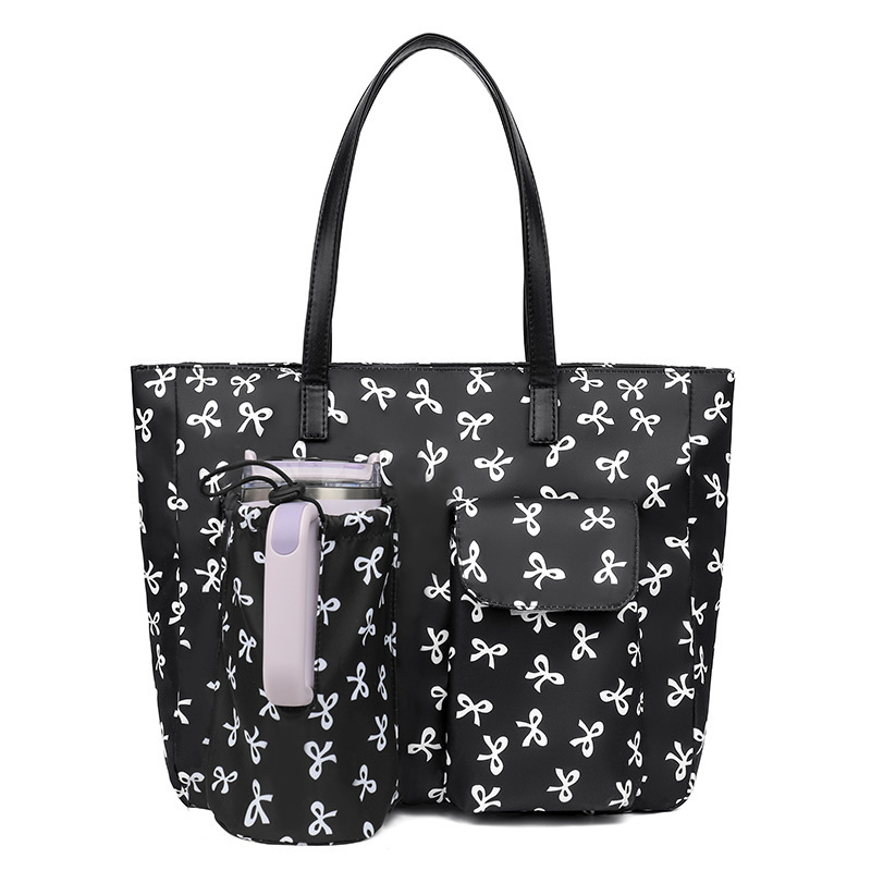 나비 프린트 작은 신선한 대용량 2025 여름 새로운 문학 스타일 숄더백 클래스 토트 백 워터 컵 가방