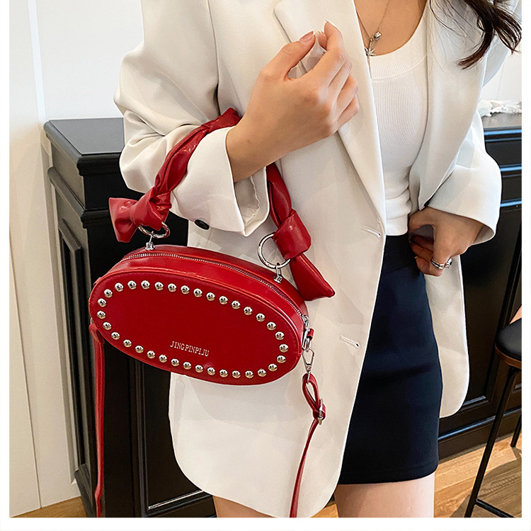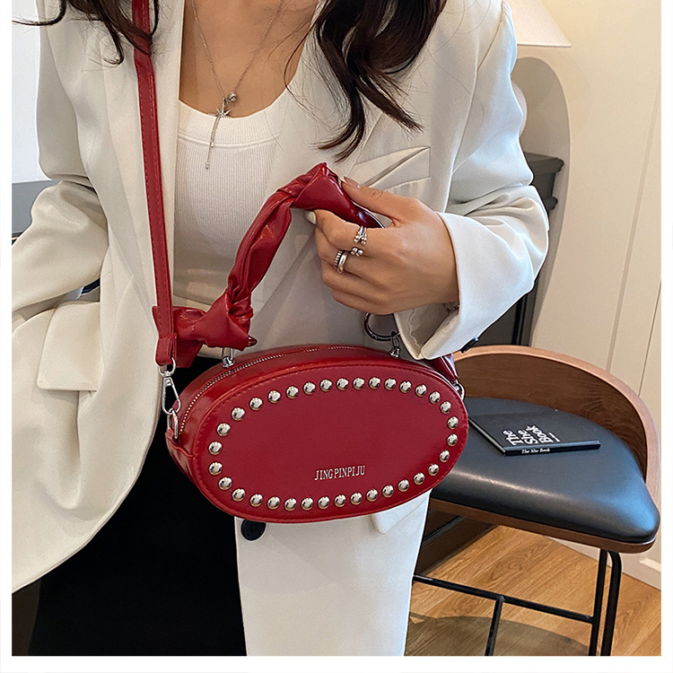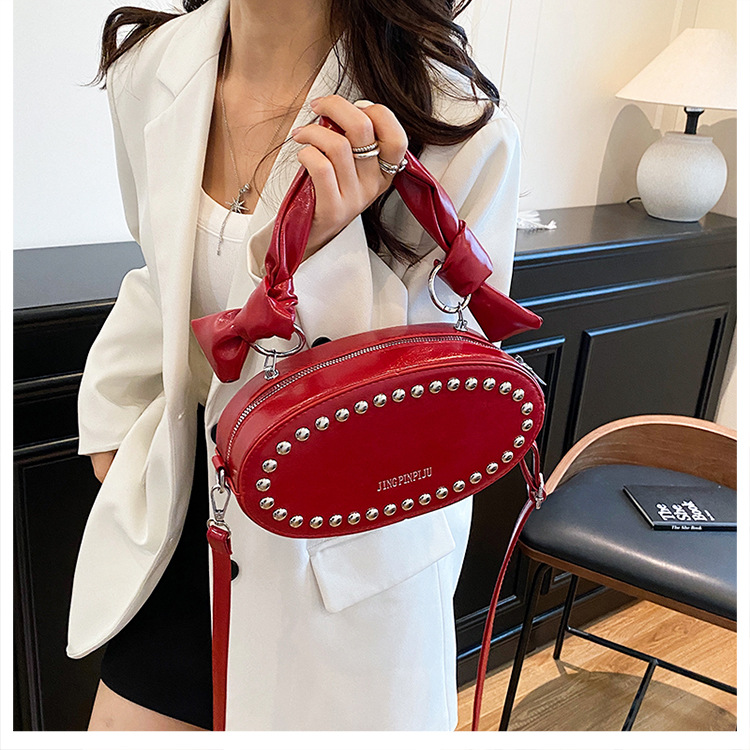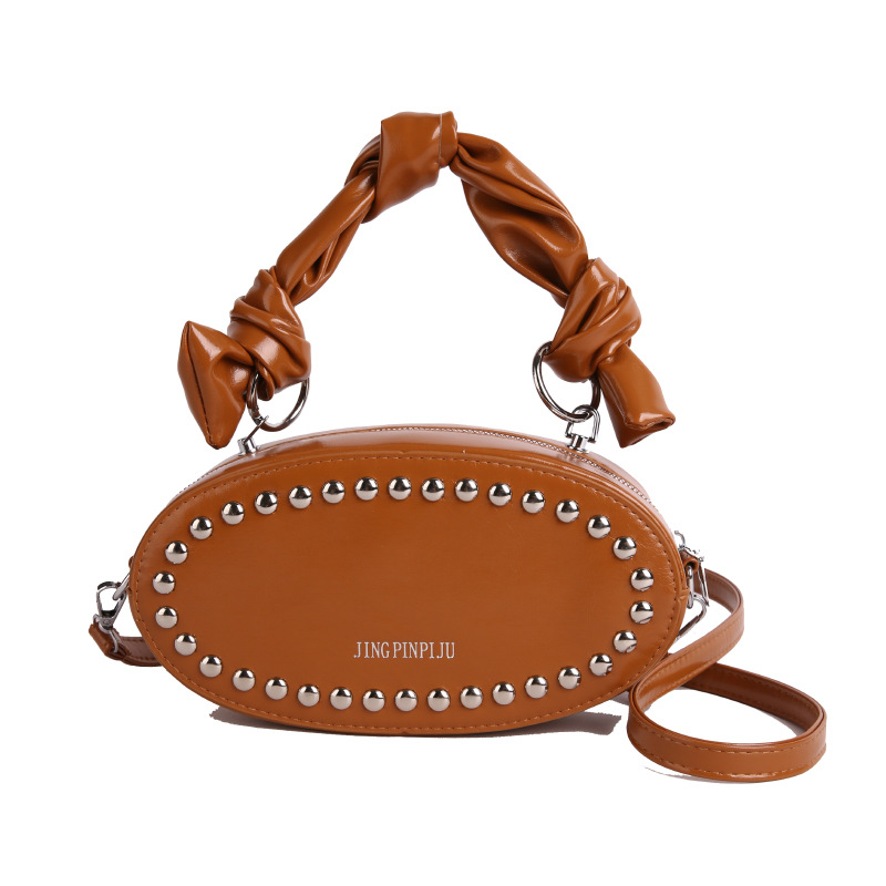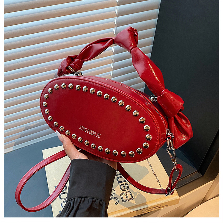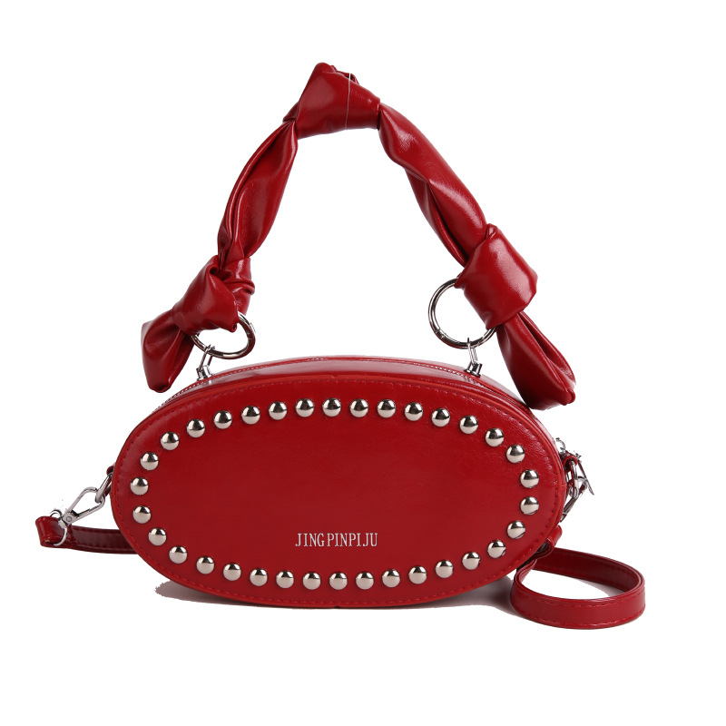 리벳이 달린 크로스보더 오일 스킨 여성용 가방 새로운 한국 스타일 외국 스타일 소녀 패션 하트 모양의 쉐이핑 백 숄더 크로스백 클라우드