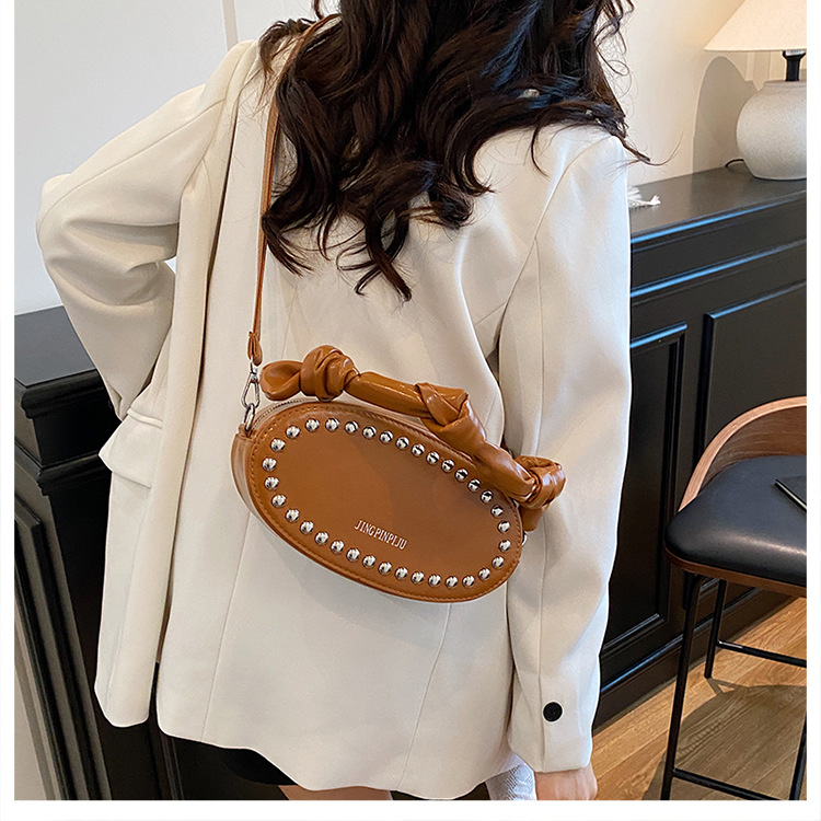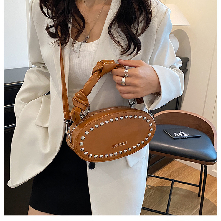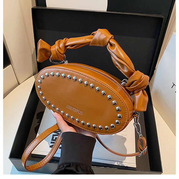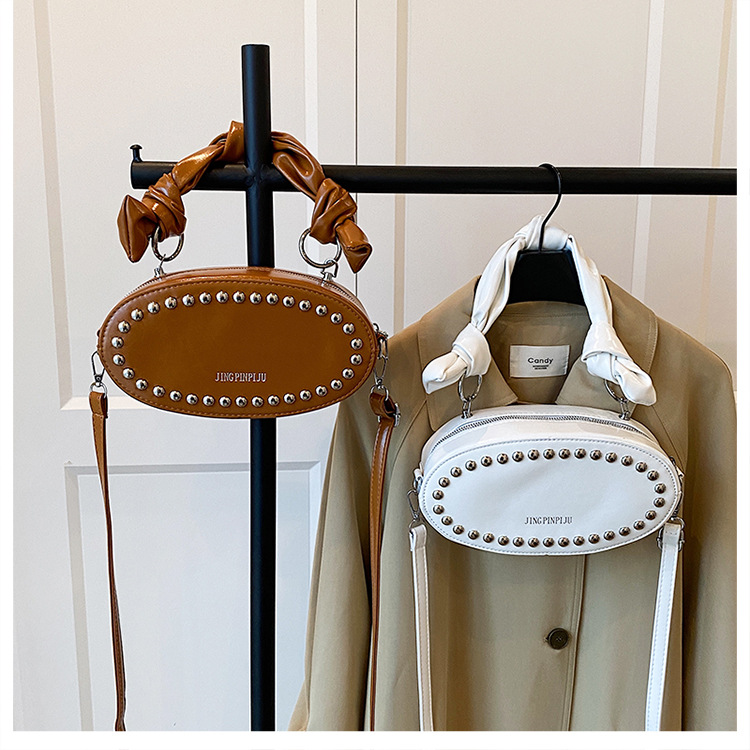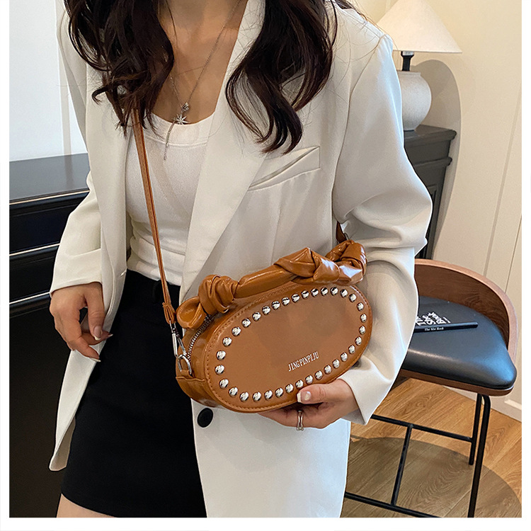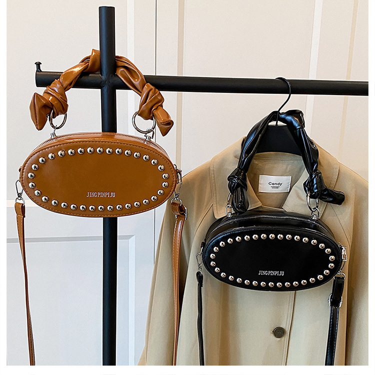 리벳이 달린 크로스보더 오일 스킨 여성용 가방 새로운 한국 스타일 외국 스타일 소녀 패션 하트 모양의 쉐이핑 백 숄더 크로스백 클라우드