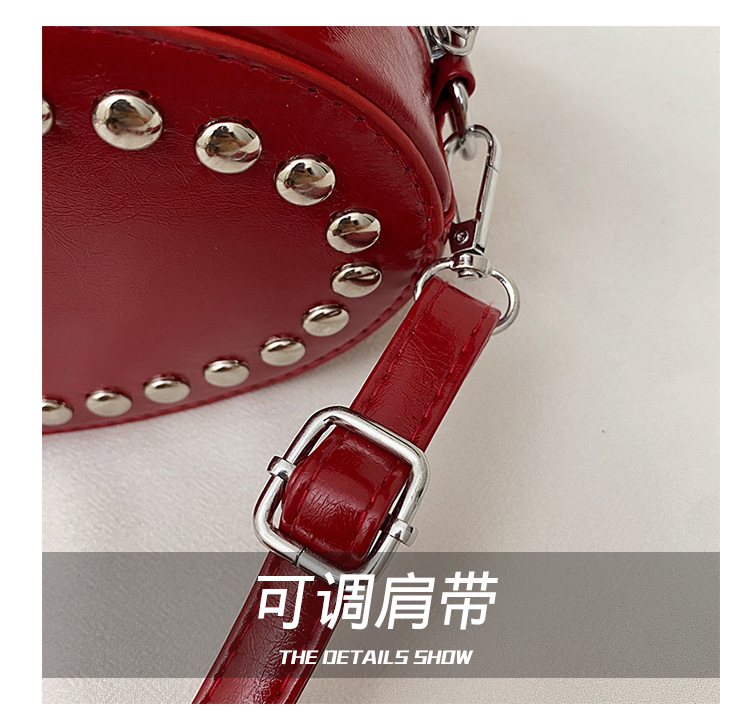 리벳이 달린 크로스보더 오일 스킨 여성용 가방 새로운 한국 스타일 외국 스타일 소녀 패션 하트 모양의 쉐이핑 백 숄더 크로스백 클라우드스토어 가기