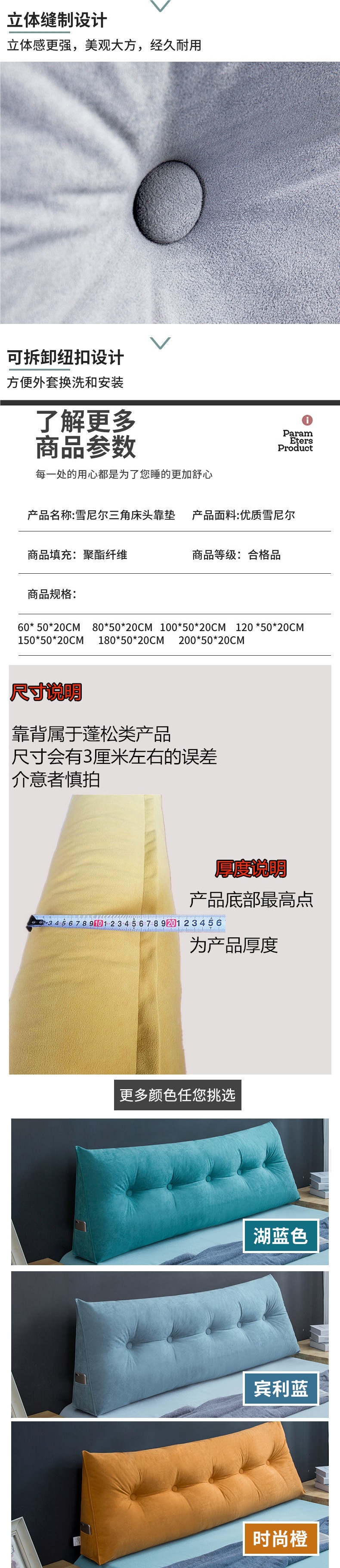 심플한 침대 옆 쿠션, 삼각형 단색 대형 등받이 베개, 부드러운 가방, 탈부착 및 세탁 가능한 이중 다다미 플로어 창 허리 보호대스토어 가기