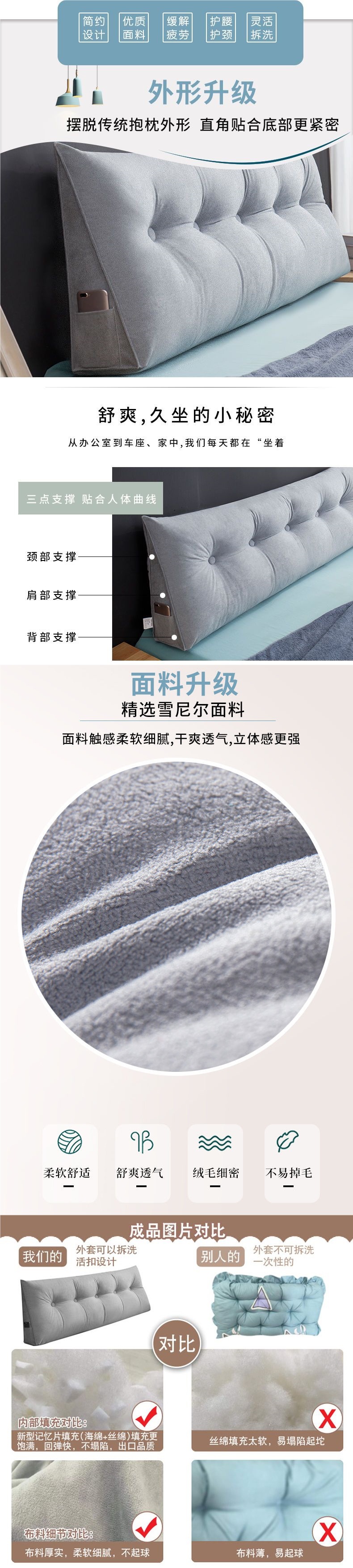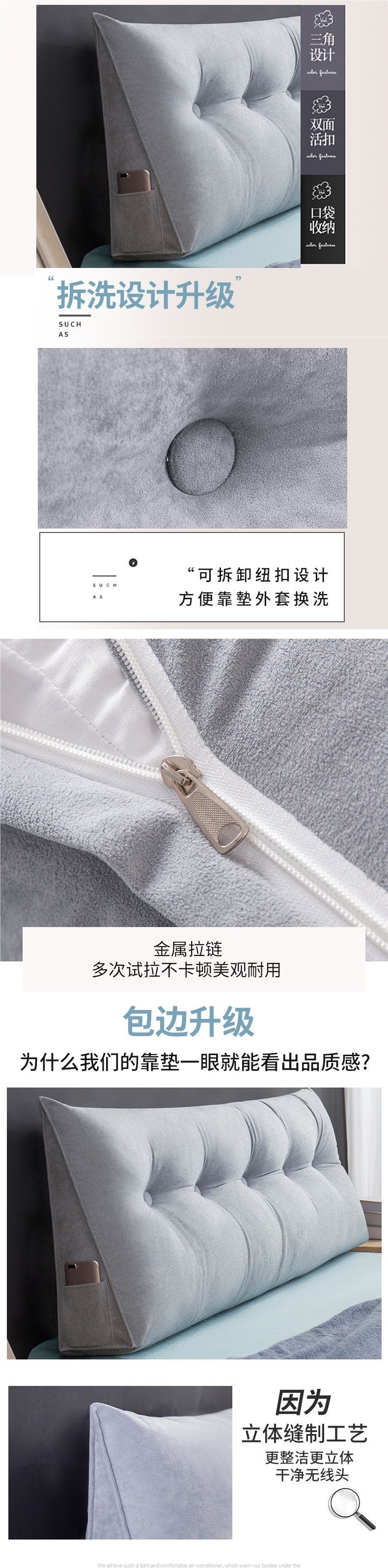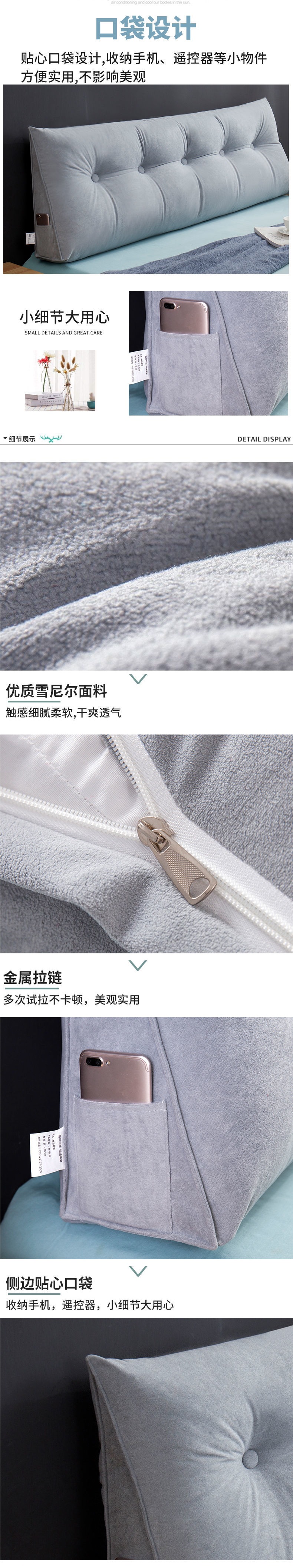 심플한 침대 옆 쿠션, 삼각형 단색 대형 등받이 베개, 부드러운 가방, 탈부착 및 세탁 가능한 이중 다다미 플로어 창 허리 보호대