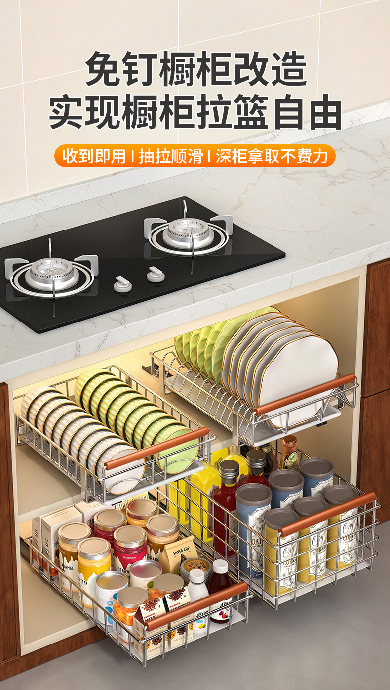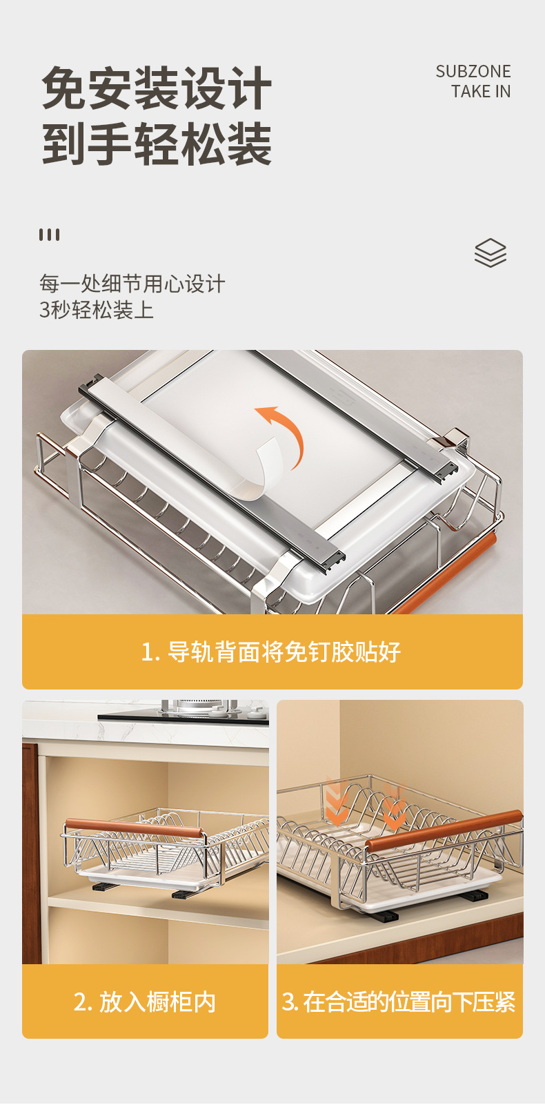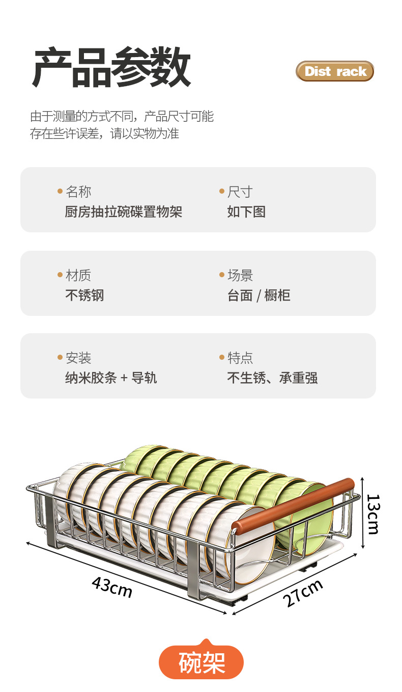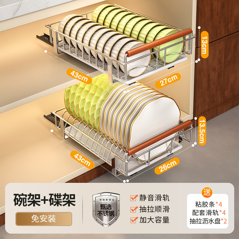 새로운 스타일의 펀치 없는 식기 건조대 캐비닛 주방 슬라이드 레일 그릇 및 접시 배수 보관함 식기 건조대스토어 가기