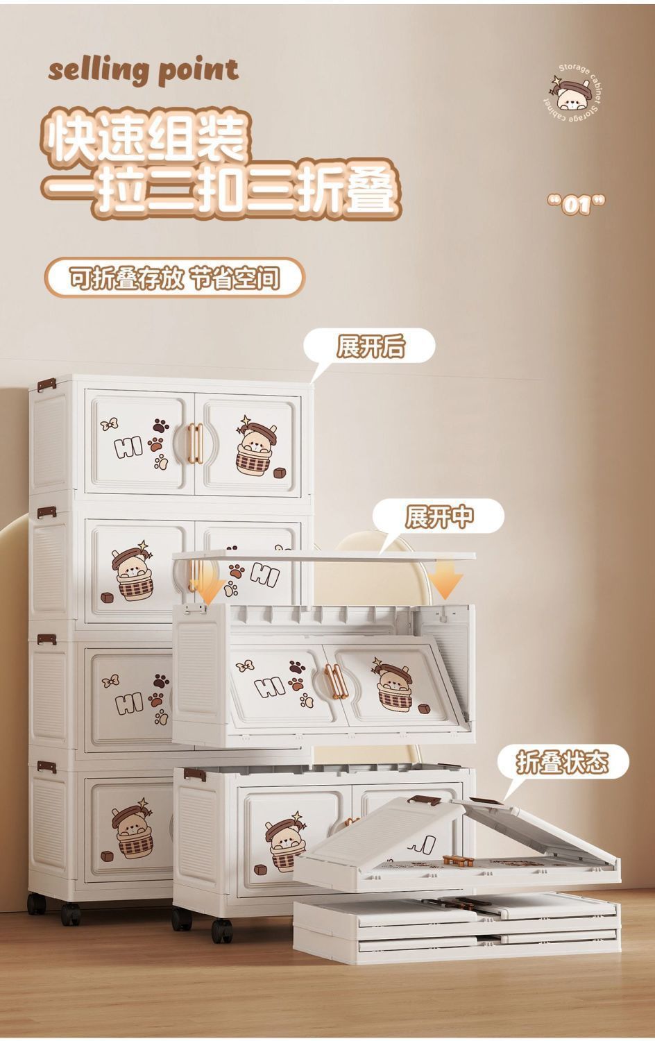 아기 만화 설치가 필요없는 두꺼운 보관 캐비닛 아기 옷장 아동복 접이식 캐비닛 침실 홈 보관 캐비닛