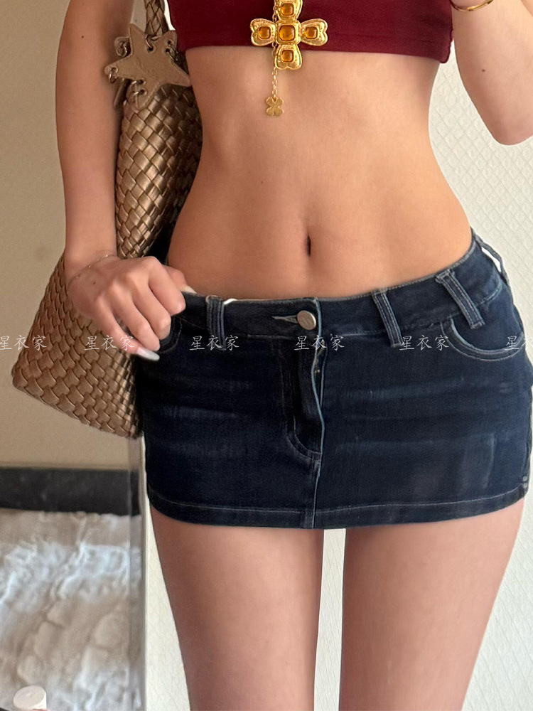 핫한 여성을 위한 아메리칸 하이 스트리트 로우 웨이스트 스커트, 레트로 y2k 밀레니얼 스타일, 다재다능하고 섹시한 엉덩이를 감싸는 초짧은 데님 스커트스토어 가기