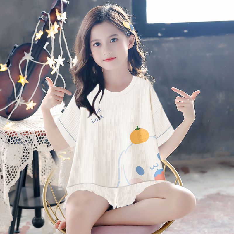 여자 잠옷 면 여름 여자 얇은 반팔 반바지 귀여운 만화 계피 개 느슨한 라운드 넥 가정 의류스토어 가기