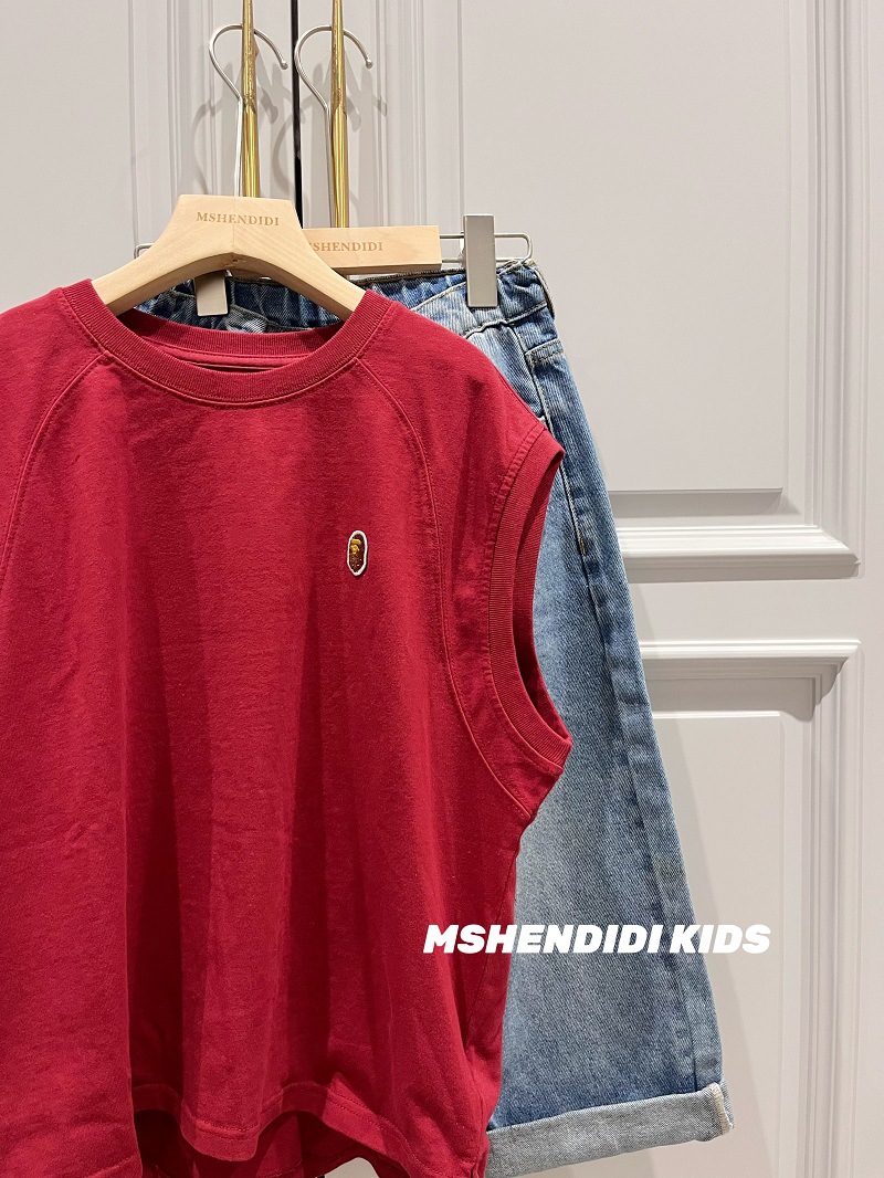일본 유행 브랜드 아동 의류 소년 조끼 아동 여름 옷 2025 새로운 빨간색 아기 소녀 유행 민소매 티셔츠 여름스토어 가기