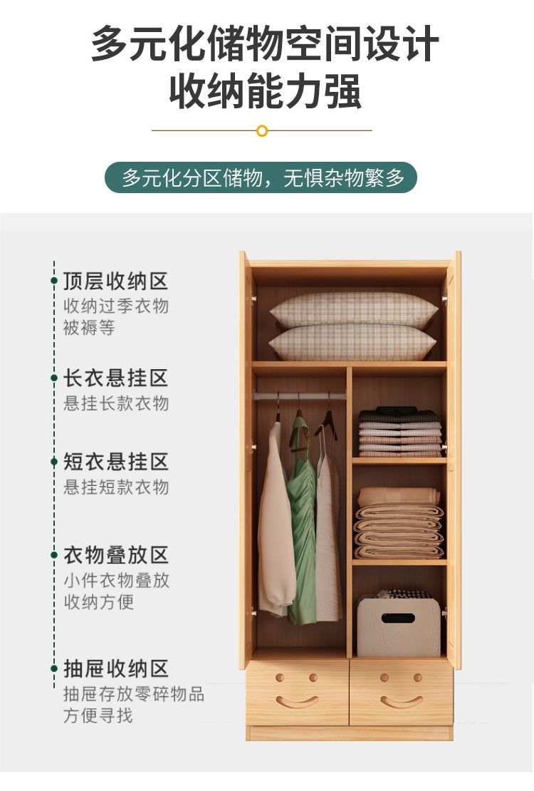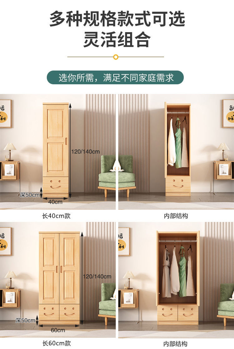 단단한 나무 옷장 개방형 침실 작은 아파트 어린이 보관 캐비닛 로그 전체 단단한 소나무 옷장 캐비닛