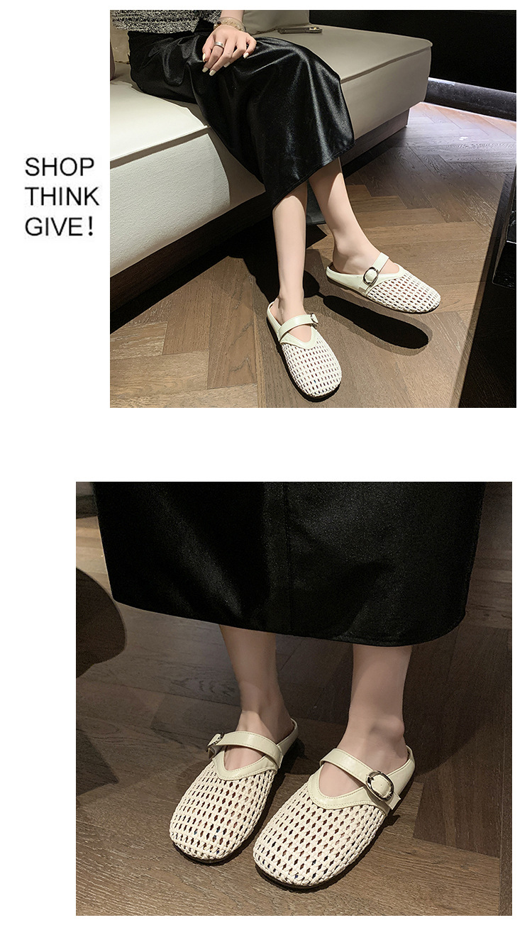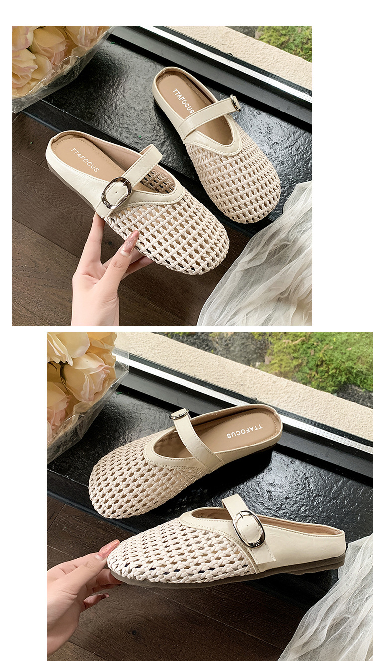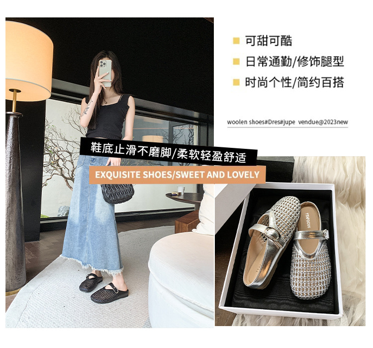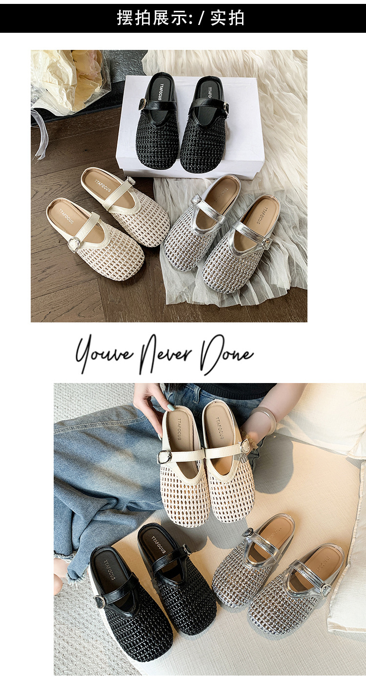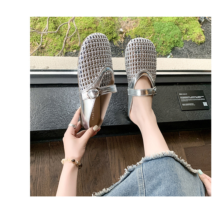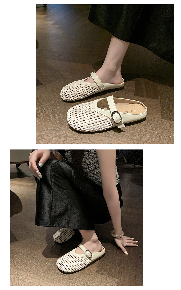 2025년 신형 플랫솔 아우터웨어 바오터우 메쉬 하프슬리퍼 여성용 게으른 슬립온 인터넷 연예인 다용도 캐주얼 샌들스토어 가기