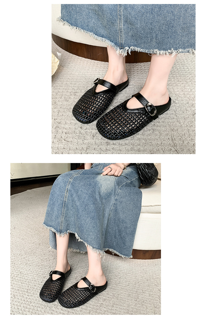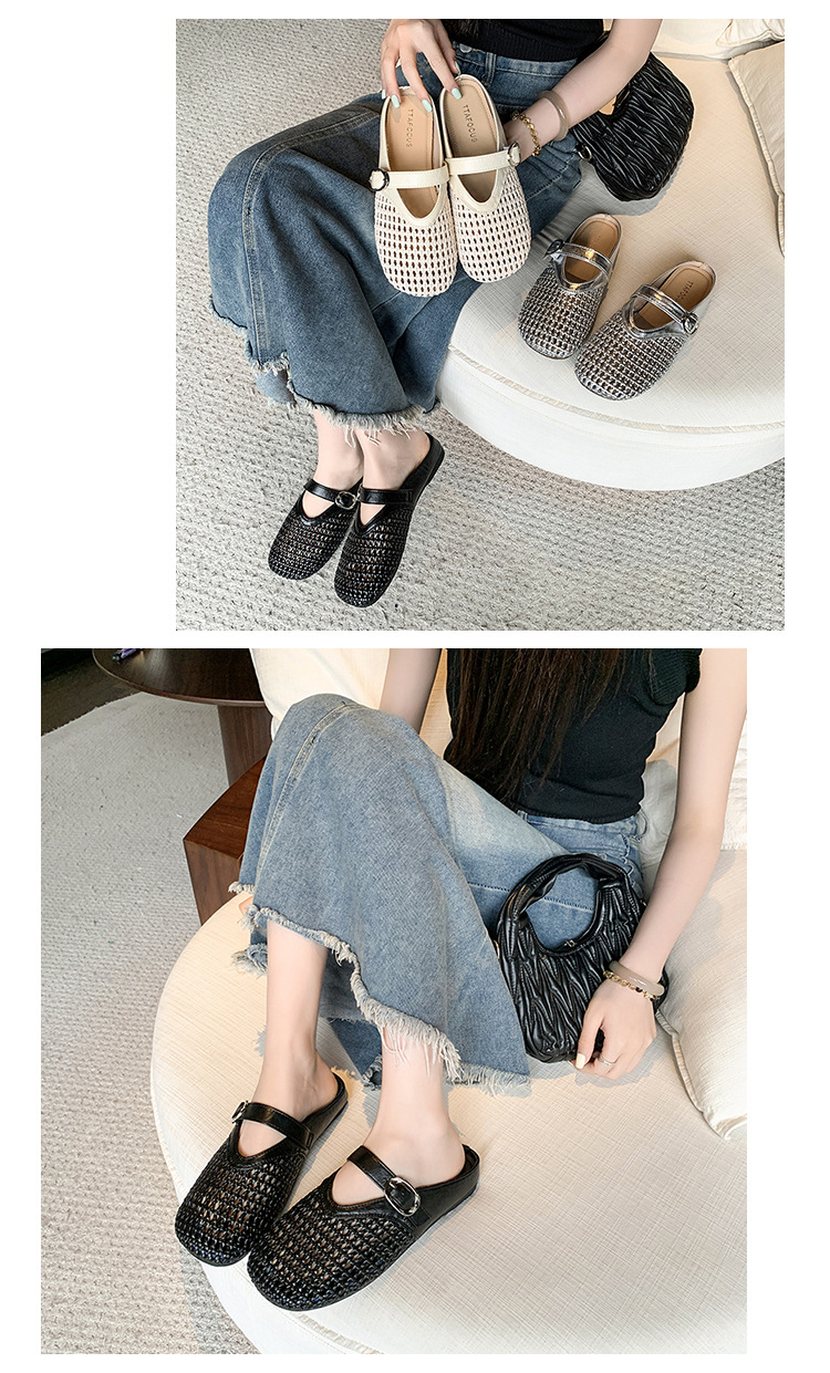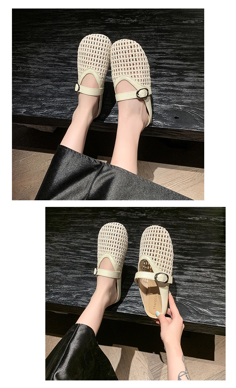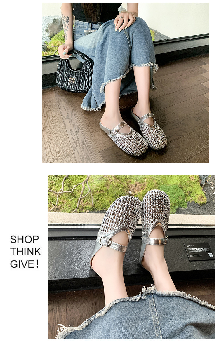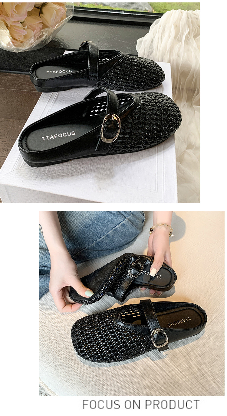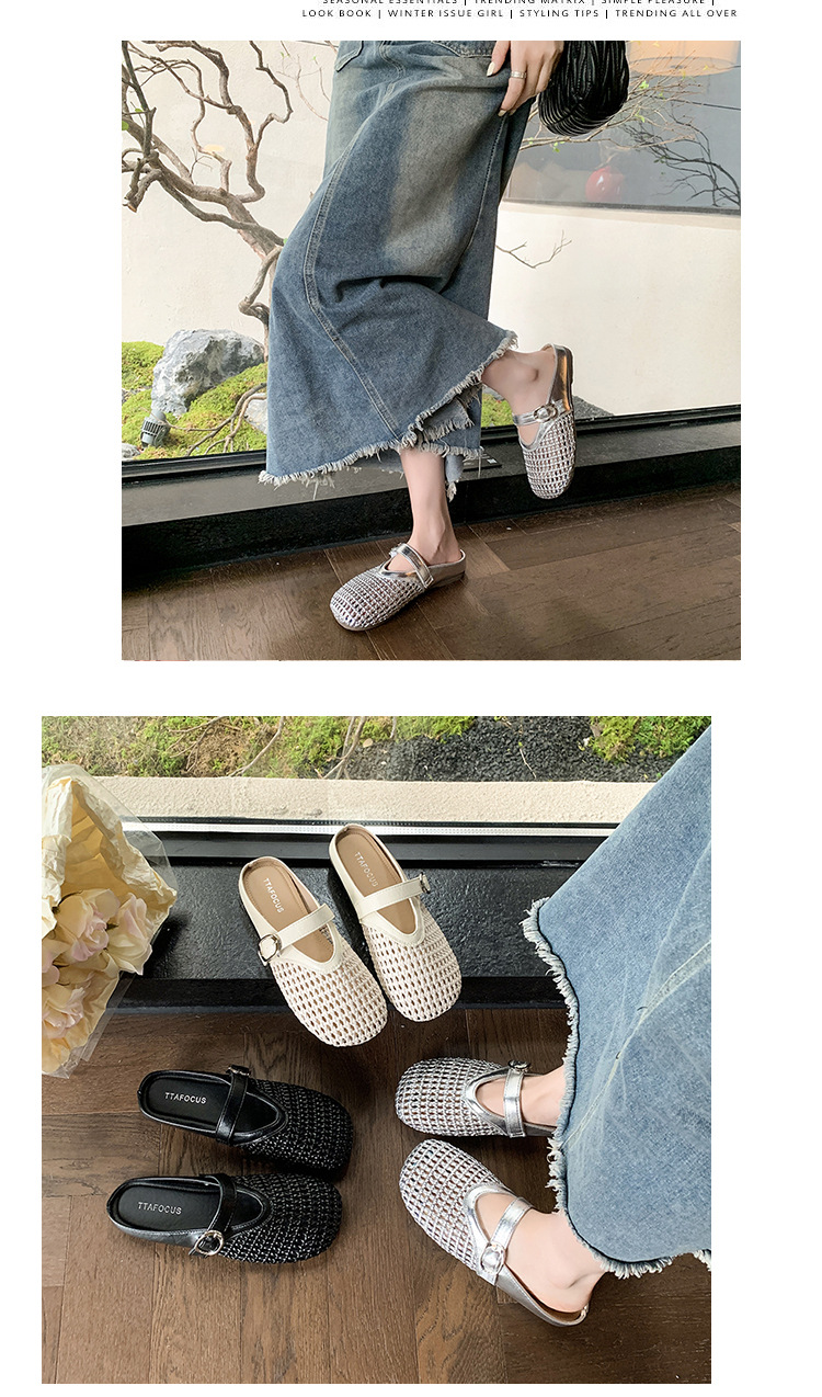 2025년 신형 플랫솔 아우터웨어 바오터우 메쉬 하프슬리퍼 여성용 게으른 슬립온 인터넷 연예인 다용도 캐주얼 샌들스토어 가기