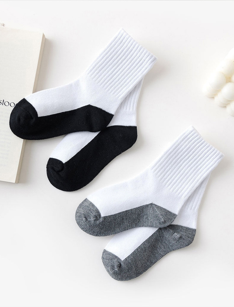 Zhuji 학생 스포츠 양말 소년 땀 흡수 중간 튜브 흰색 양말 봄, 가을, 여름 흰색 어린이 양말 소녀 도매