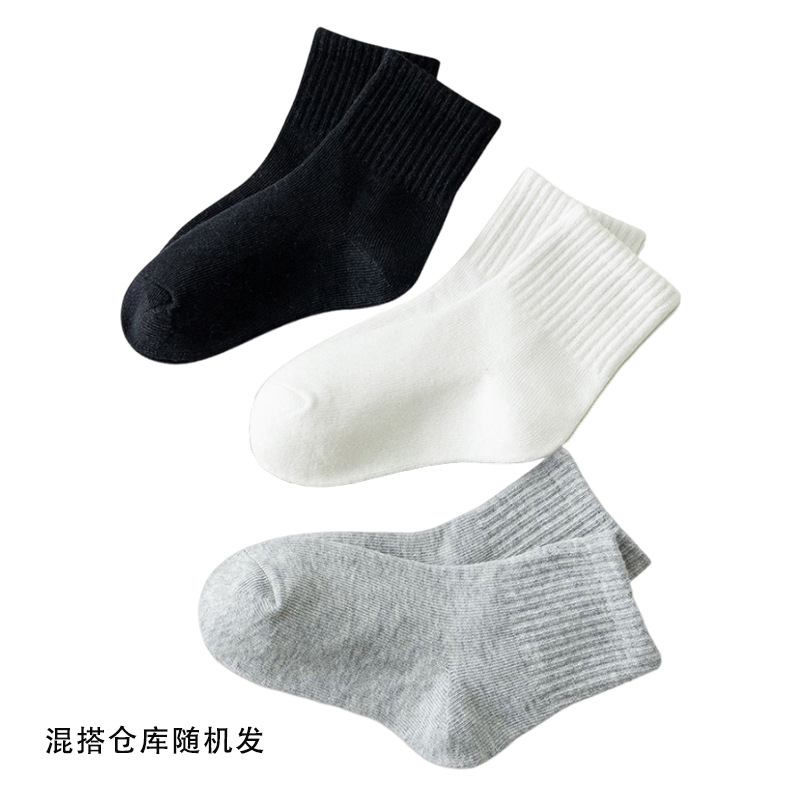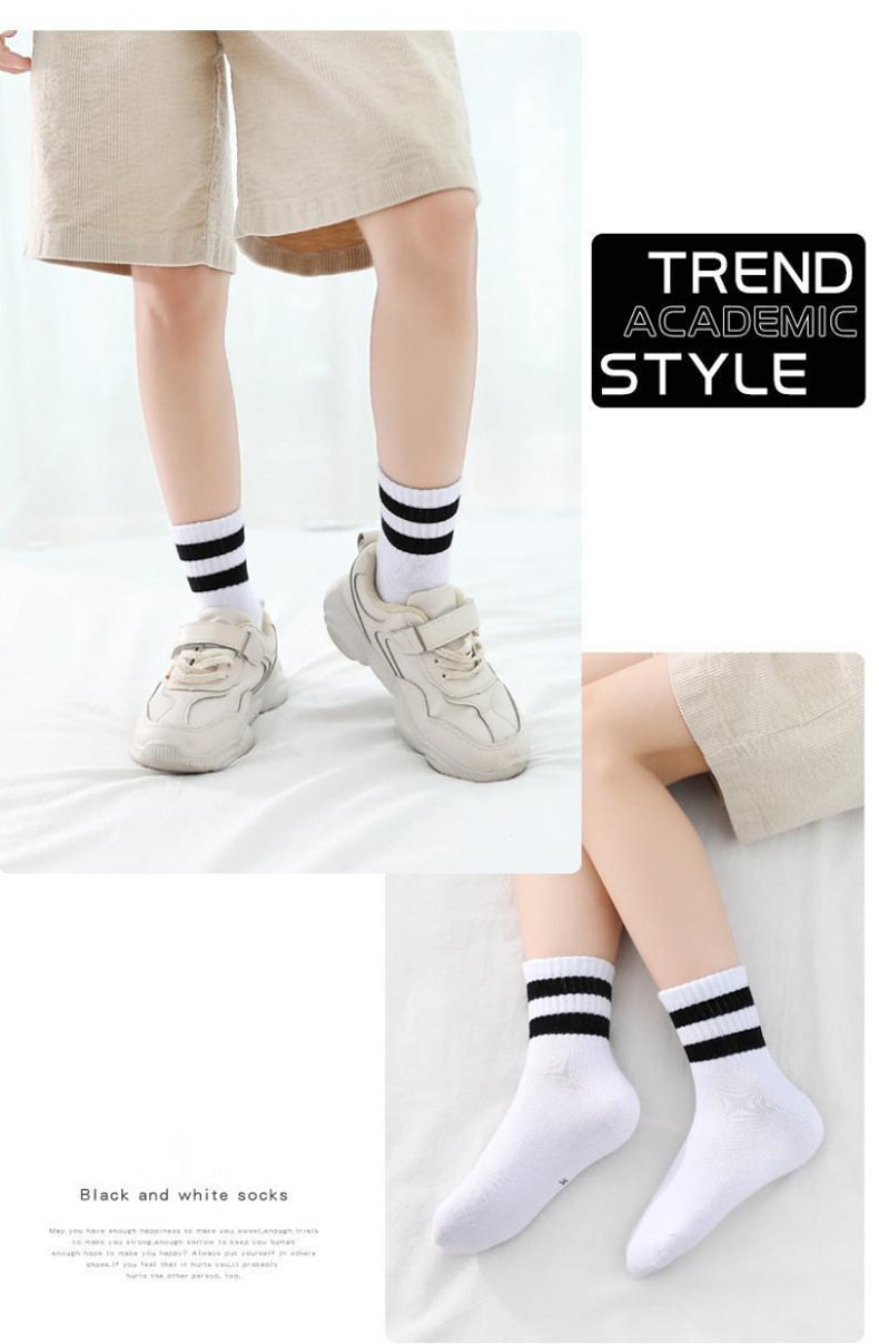 Zhuji 학생 스포츠 양말 소년 땀 흡수 중간 튜브 흰색 양말 봄, 가을, 여름 흰색 어린이 양말 소녀 도매스토어 가기