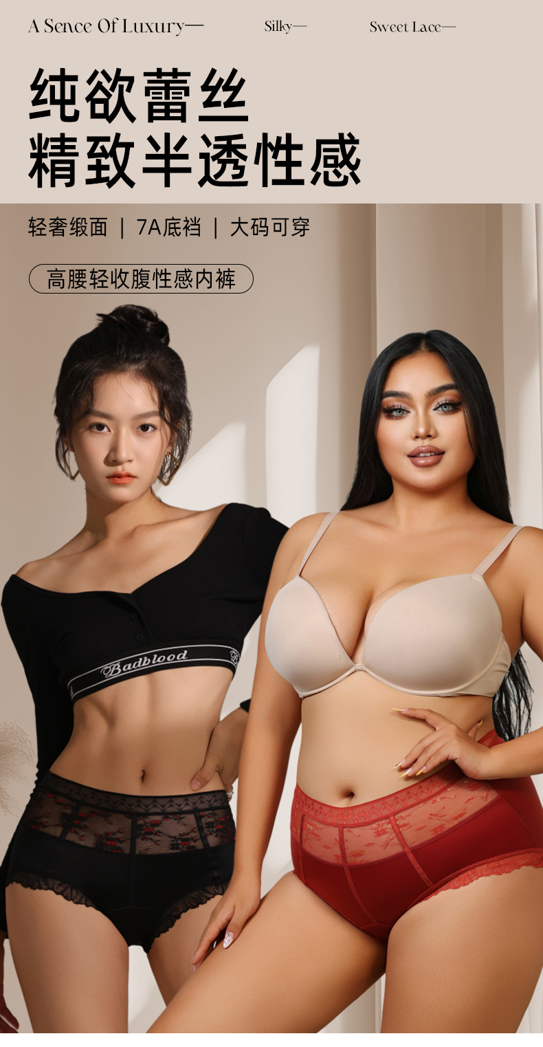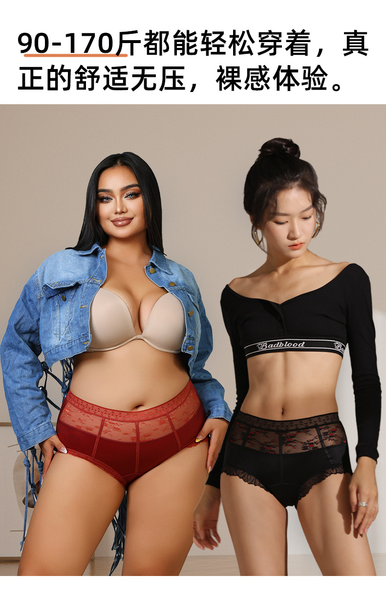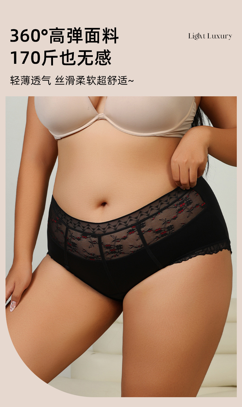 레이스 고급스러운 섹시한 속옷, 편안하고 통기성이 뛰어나며 항균, 가랑이 신축성 있는 대형 팬티, 여성용 새 엉덩이 커버 반바지